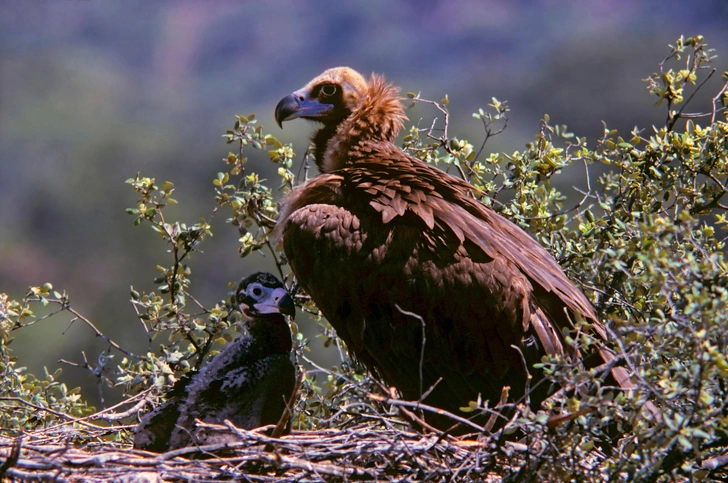 Крылатые гиганты, пирующие на трупах и устраивающие жестокие драки за обладание добычей, проявляют трогательную заботу о своем потомстве. Родители ежедневно совершают длительные вылеты, чтобы накормить малышей. Но не всегда взрослым удается принести малышам нужное количество корма. Поэтому птенцы с первых дней привыкают к суровым условиям.