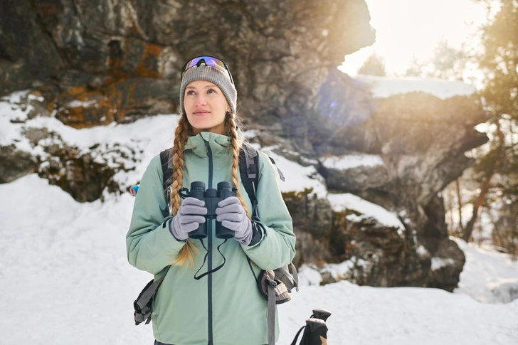 В минусовую температуру (от –5 до –15 °C) подойдет термобелье средней плотности, флисовый слой или софтшелл, сверху — пуховик или мембранная куртка с утеплителем.