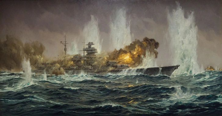 Спустя 45 минут все четыре башни «Бисмарка» были выведены из строя. Многие матросы и офицеры погибли, линкор охватило пламя. Но корабль все еще держался на плаву. Отправить его на дно с помощью торпед было приказано тяжелому крейсеру «Дорсетшир», который выпустил по «Бисмарку» три торпеды с близкого расстояния. Все три попали в цель, и в 10:40 «Бисмарк» затонул. Впрочем, есть версия, что приказ о затоплении корабля дал капитан Эрнст Линдеманн.