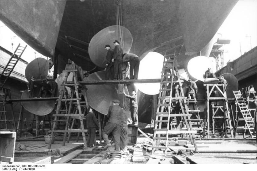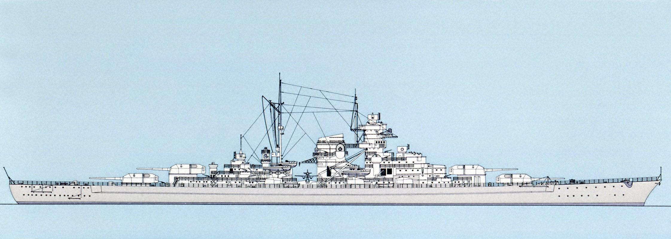 Впрочем, и немецкому, и британским, и всем прочим линкорам было далеко до крупнейших линейных кораблей всех времен: стандартное водоизмещение японских «Ямато» и «Мусаси», спущенных на воду в 1940 году, составляло около 65 000 тонн.
