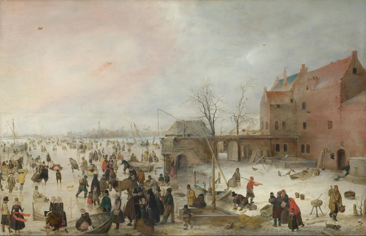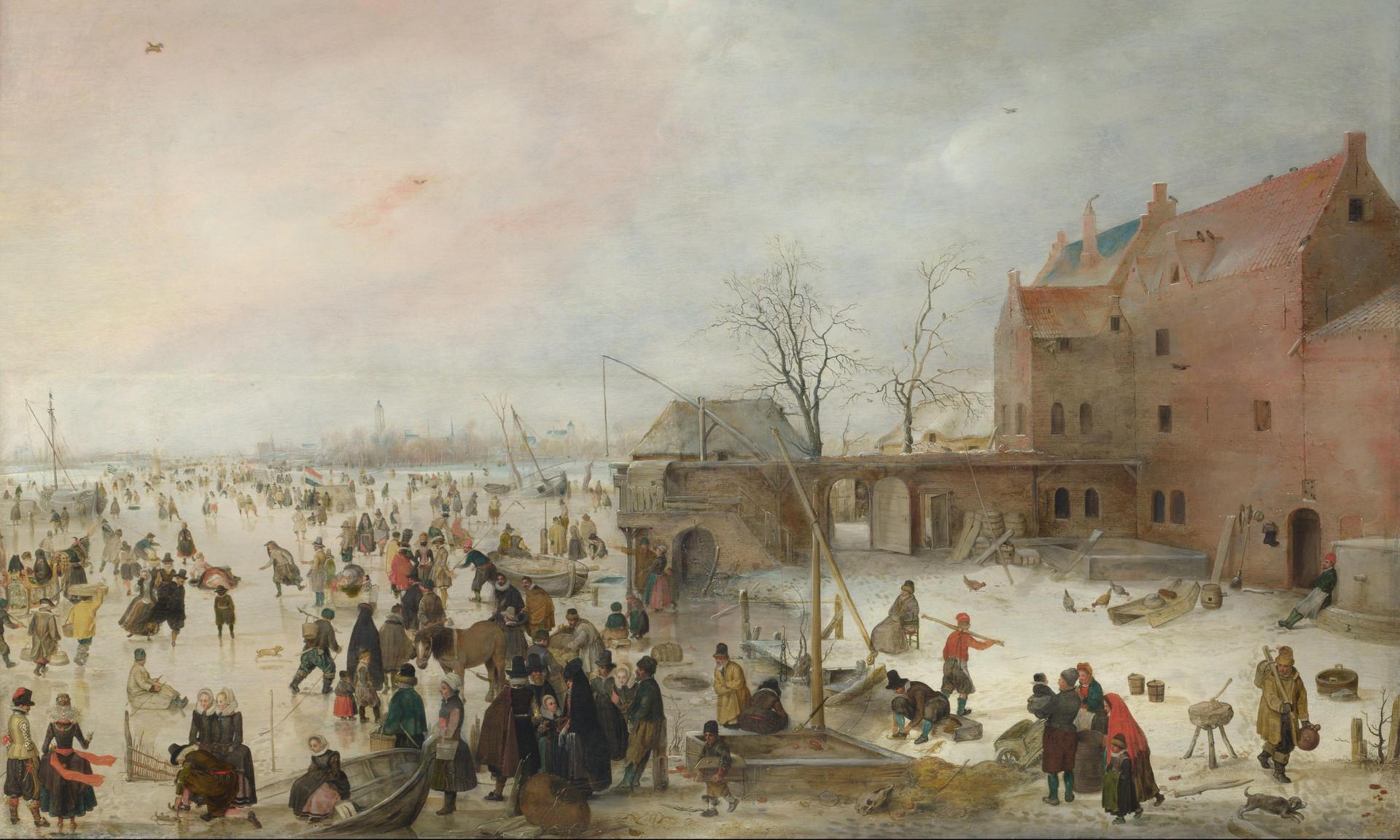 В начале XVII века славу Брейгеля как мастера зимних пейзажей разделил голландский художник Хендрик Аверкамп. В 1608 году он стал свидетелем очень холодной зимы: за последние сорок с лишним лет в Нидерландах не было таких продолжительных и сильных морозов. Водоемы были покрыты внушительным слоем льда, чем не преминули воспользоваться любители зимних развлечений. Так родилась картина «Зимний пейзаж с конькобежцами».