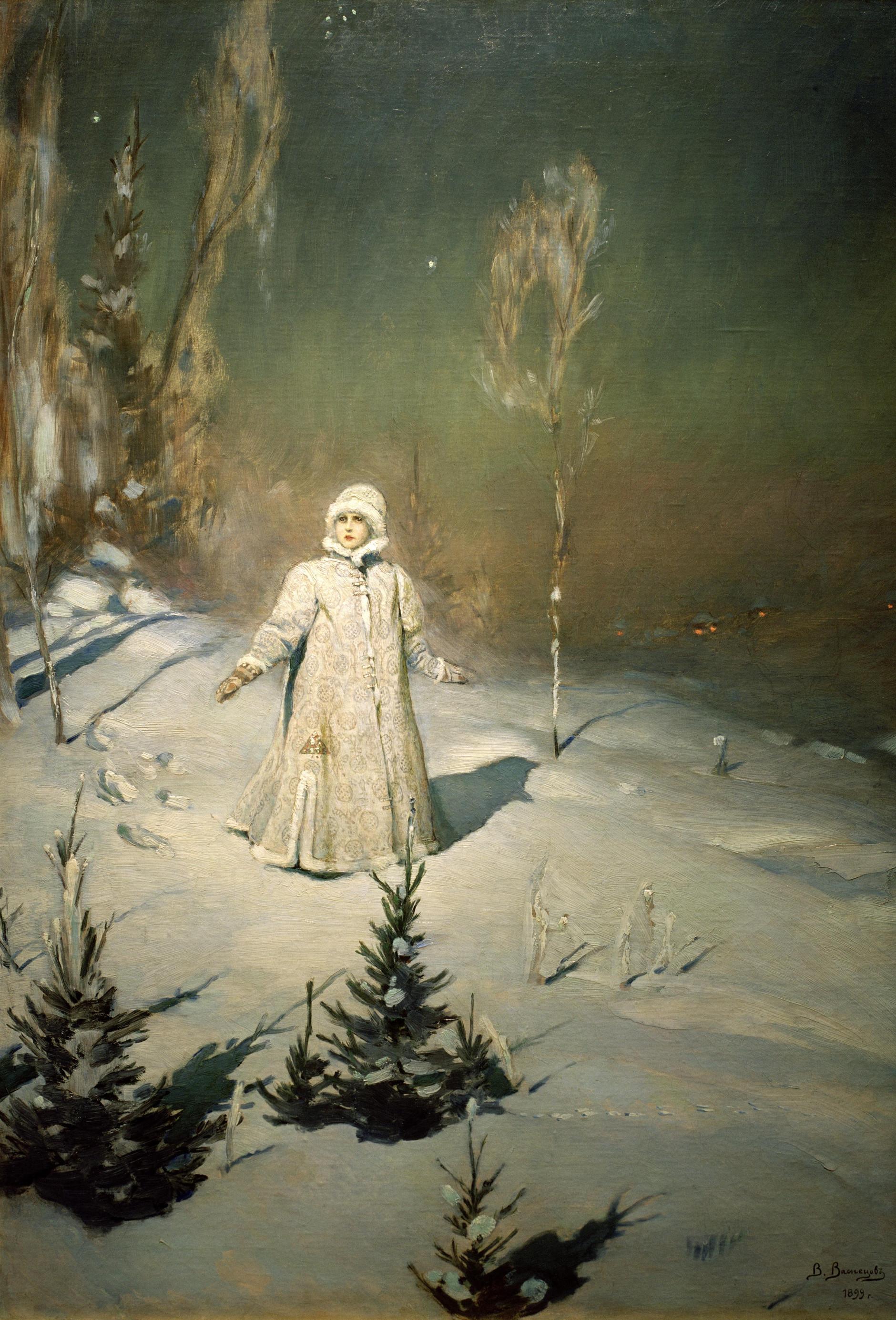 Картину, посвященную героине зимних сказок Снегурочке в 1899 году написал Виктор Васнецов — признанный мастер «сказочного» жанра в русской живописи.