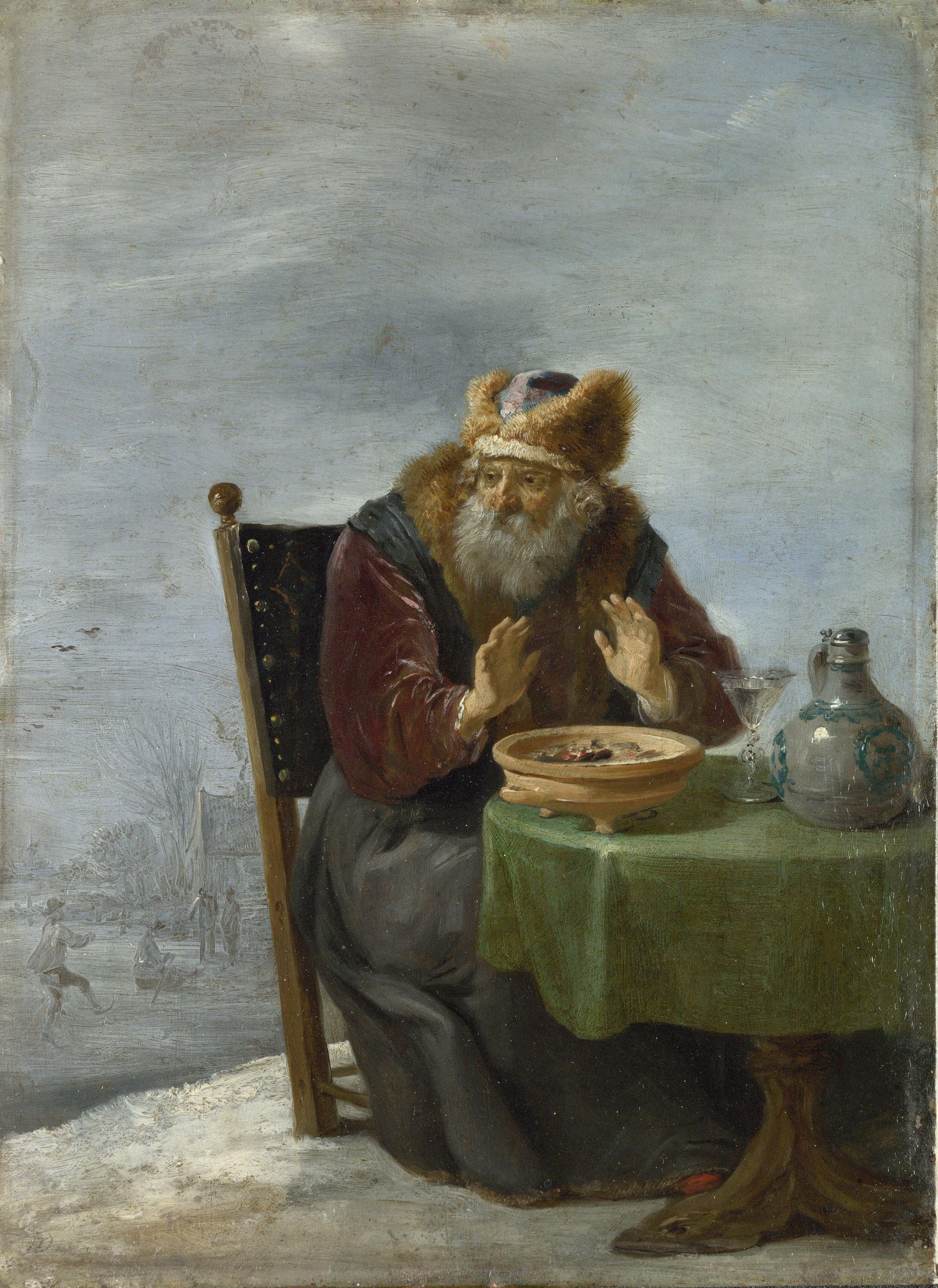 Другой излюбленный зимний сюжет художников — сказочные персонажи на фоне сурового пейзажа. Около 1644 года фламандский живописец Давид Тенирс Младший написал картину «Зима» для цикла сезонных полотен.