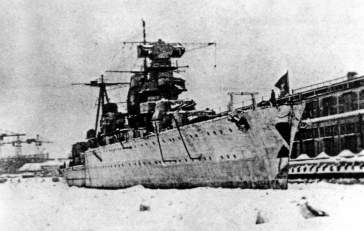 Весной 1942-го «Максим Горький», как и другие корабли Балтийского флота, стал целью немецкой авиации, проводившей операцию «Айсштосс» («Ледовый удар»). Немецкое командование рассчитывало, что скованные льдом, не способные маневрировать корабли окажутся легкой мишенью. В 20-х числах марта противник начал подготовку к осуществлению своего замысла. Для тренировки летчиков на льду одного из озер были начерчены контуры советских боевых кораблей в натуральную величину — в том положении, в котором они стояли на Неве.