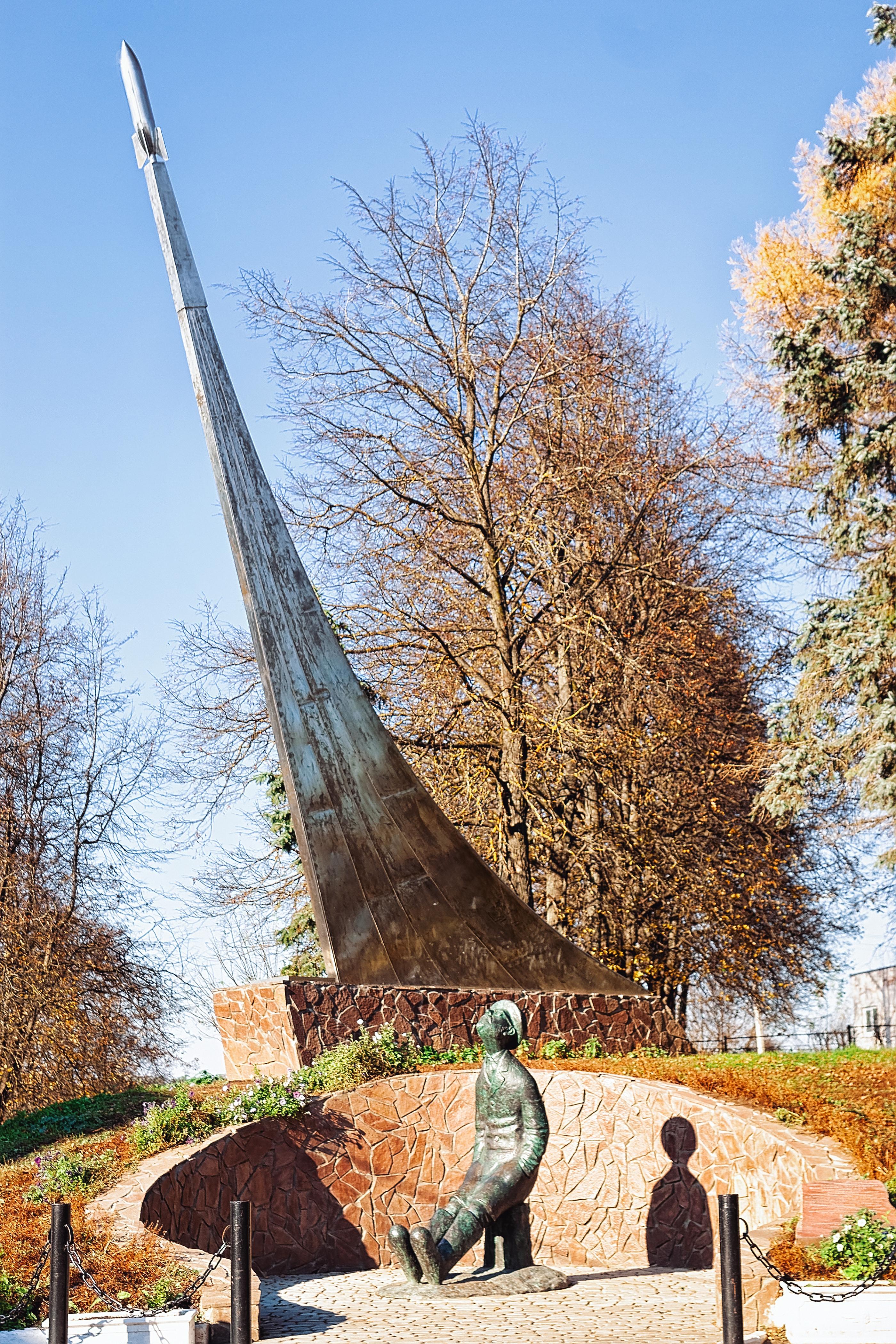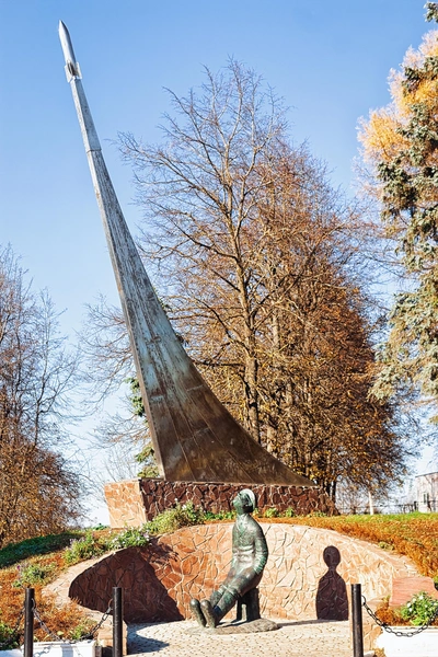 Космический дух чувствуется с въезда в город: у дороги стоит настоящая ракета Р-2, на фасадах домов — мемориальные доски с именами конструкторов и граффити с портретом Гагарина. Даже название привокзального магазина «Заря» здесь не случайное: это радиопозывной академика Королева.