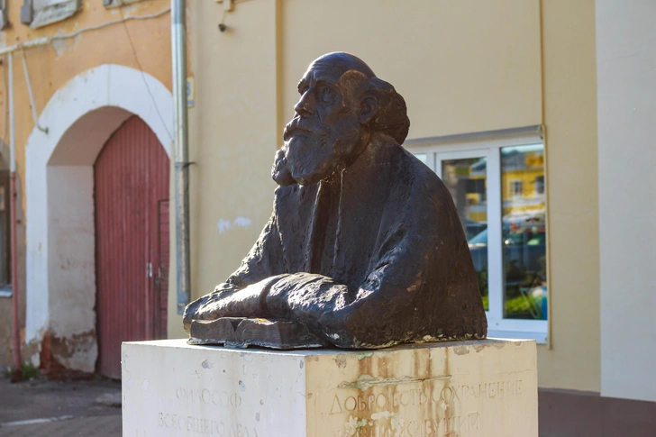 Еще одна достопримечательность находится у стен местной библиотеки — первый в России памятник Николаю Федорову, философу, которого считают родоначальником русского космизма. Без его идей не было бы ни Циолковского, ни всего, что последовало за ним.