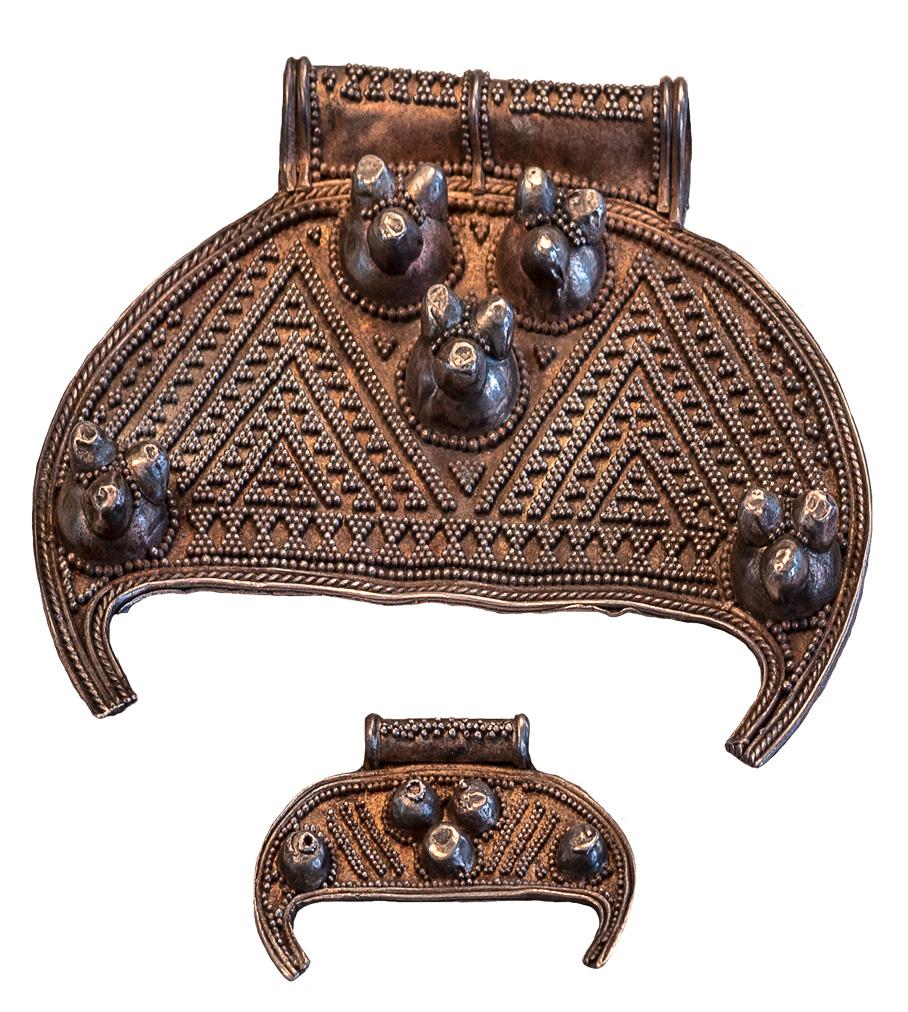 Оттуда, вероятно, скопированы и подвески-лунницы с характерным орнаментом. Художник поместил их на сбрую коня Добрыни, хотя, скорее всего, это были женские украшения. Вероятно, Васнецов понимал, что персонажа, даже если это легендарный герой и собирательный образ, способны сделать живым и убедительным реалистичные, достоверно выписанные детали.
