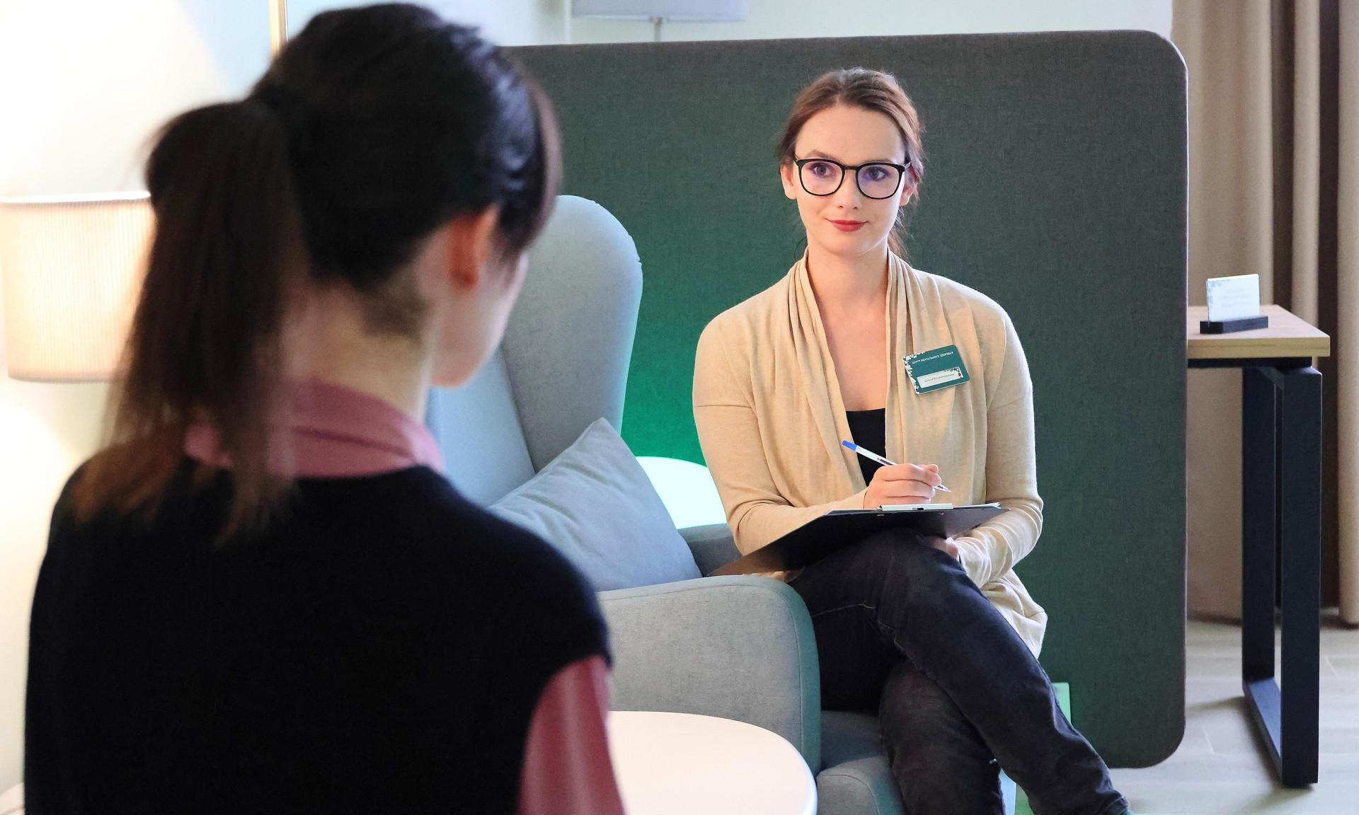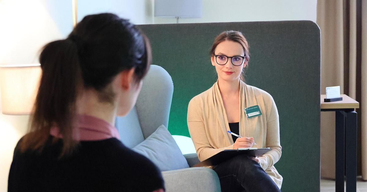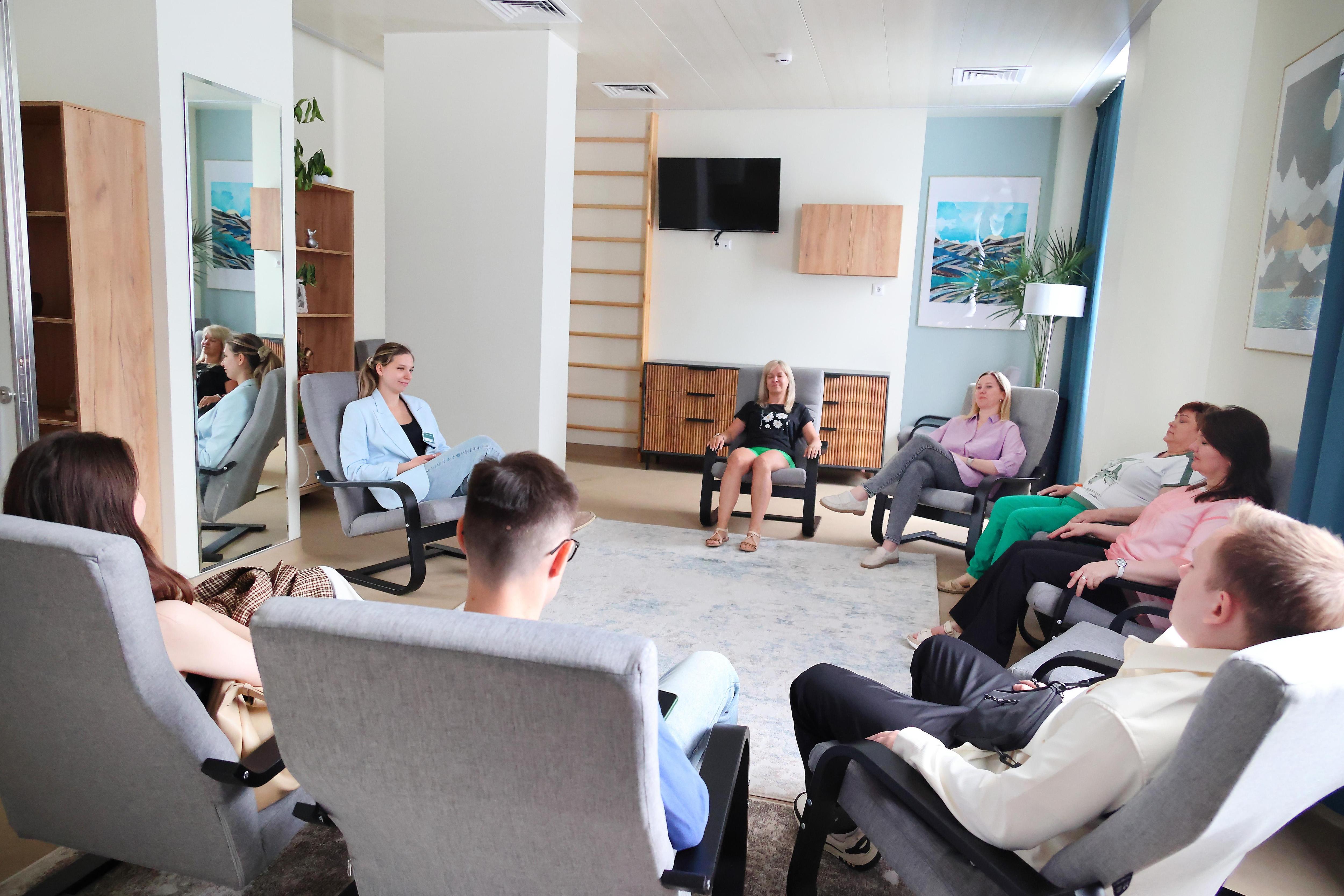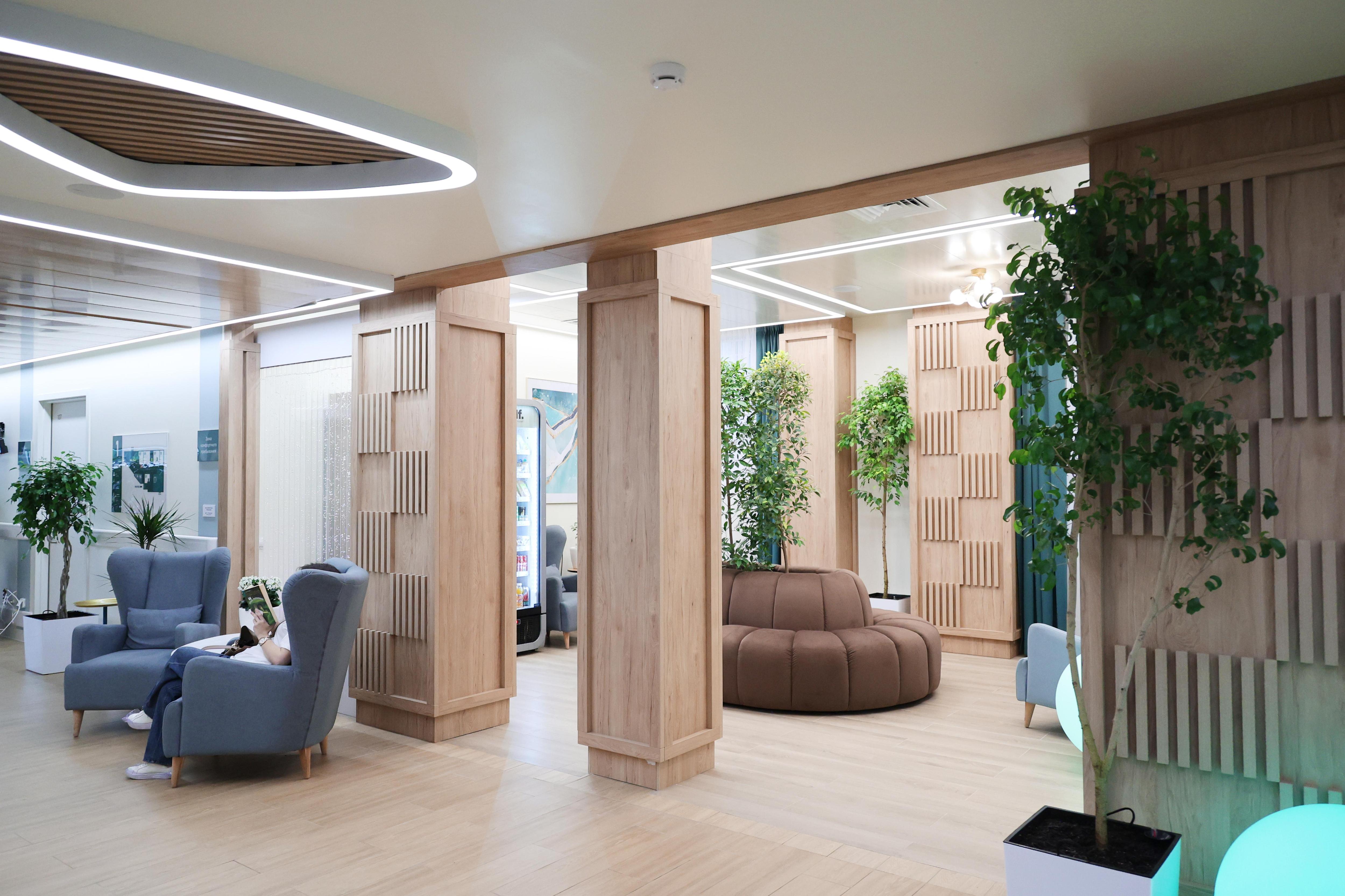 Это часть концепции центров ментального здоровья: их интерьеры должны формировать безбарьерную среду, а царящая в ЦМЗ атмосфера — настраивать на расслабление. Посетителей здесь никто не называет пациентами, а персонал центров не носит белые халаты — сотрудников в «гражданской» одежде выдают только бейджики с именами.