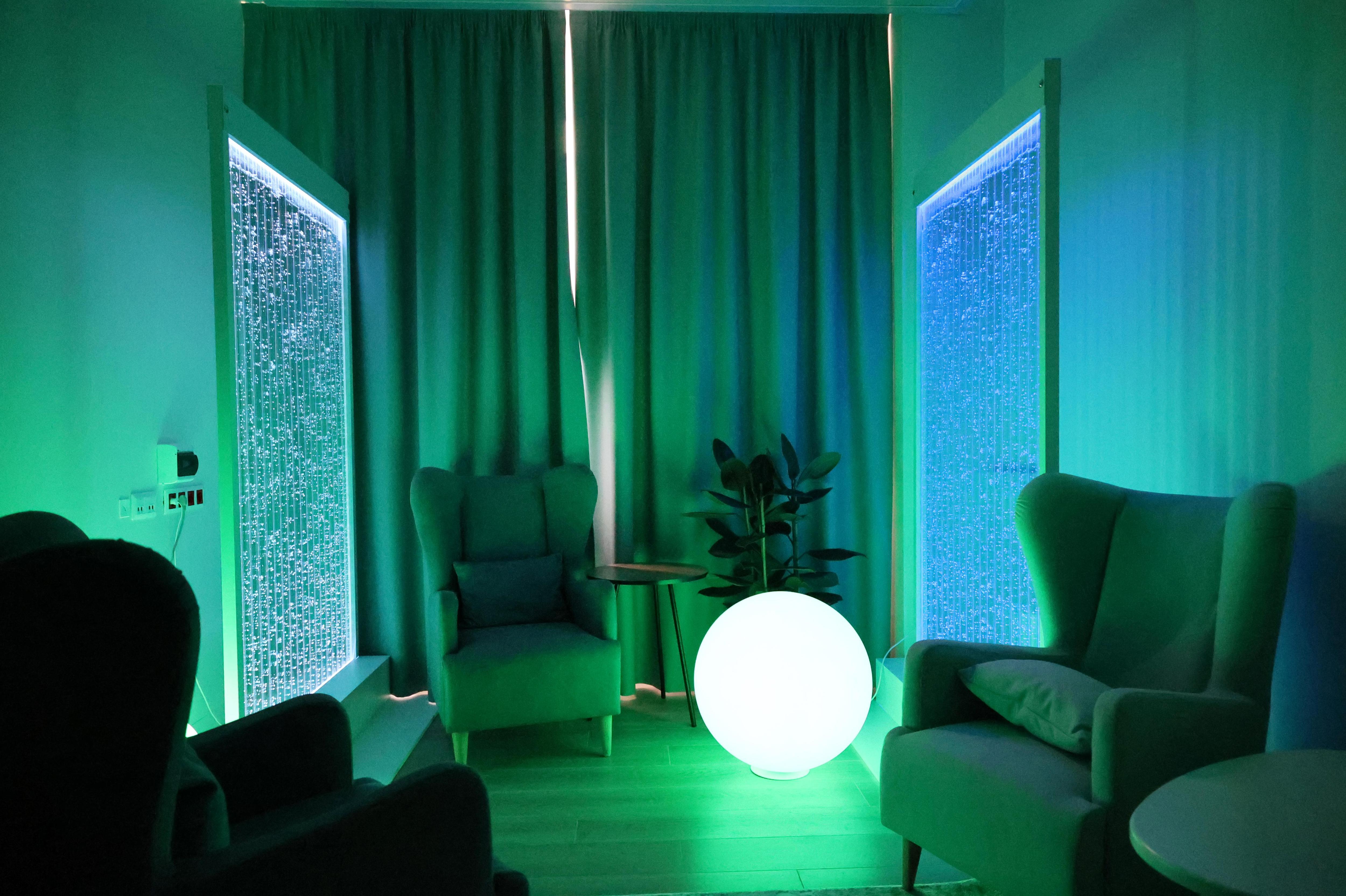 В комнату психологической разгрузки с искусственными водопадами и приглушенным светом специальной записи не требуется. Сюда открыт доступ любому посетителю и сотруднику ЦМЗ. Здесь, сидя в мягком кресле, можно снять сенсорную перегрузку, отдохнуть и расслабиться до или после консультации.