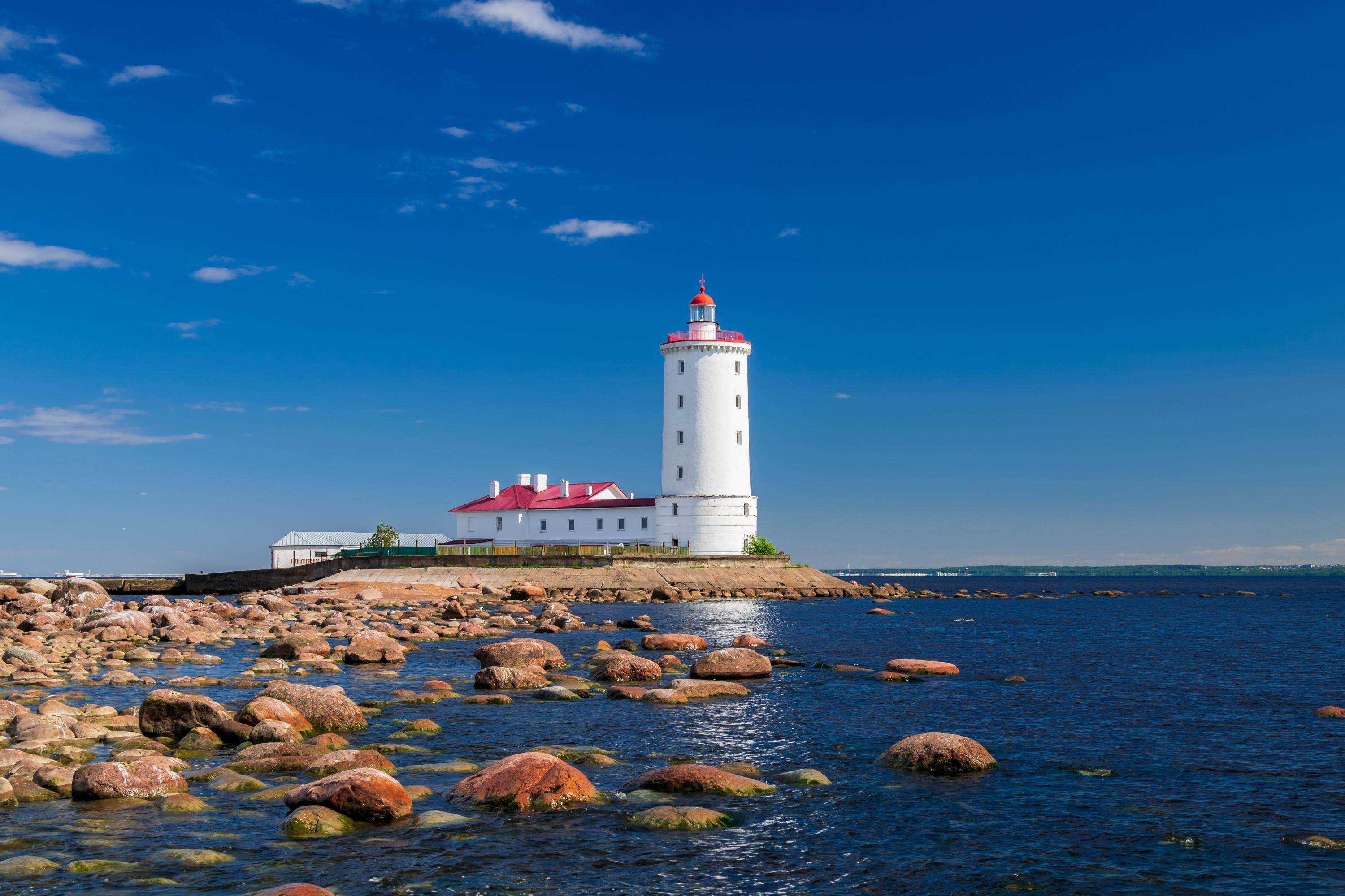 Самый старый маяк — Толбухин — находится в пяти километрах от Кронштадта. В 2019 году ему исполнилось 300 лет. Петр I лично выбрал место для него, сделал промеры глубин и даже набросал эскиз, дав указание «Сделать колм каменный с фонарем на косе Котлинской». Под маяк насыпали искусственный островок, но после дело застопорилось: не хватало рабочих рук и стройматериалов. В итоге первая версия маяка, построенная в 1719 году, была деревянной.