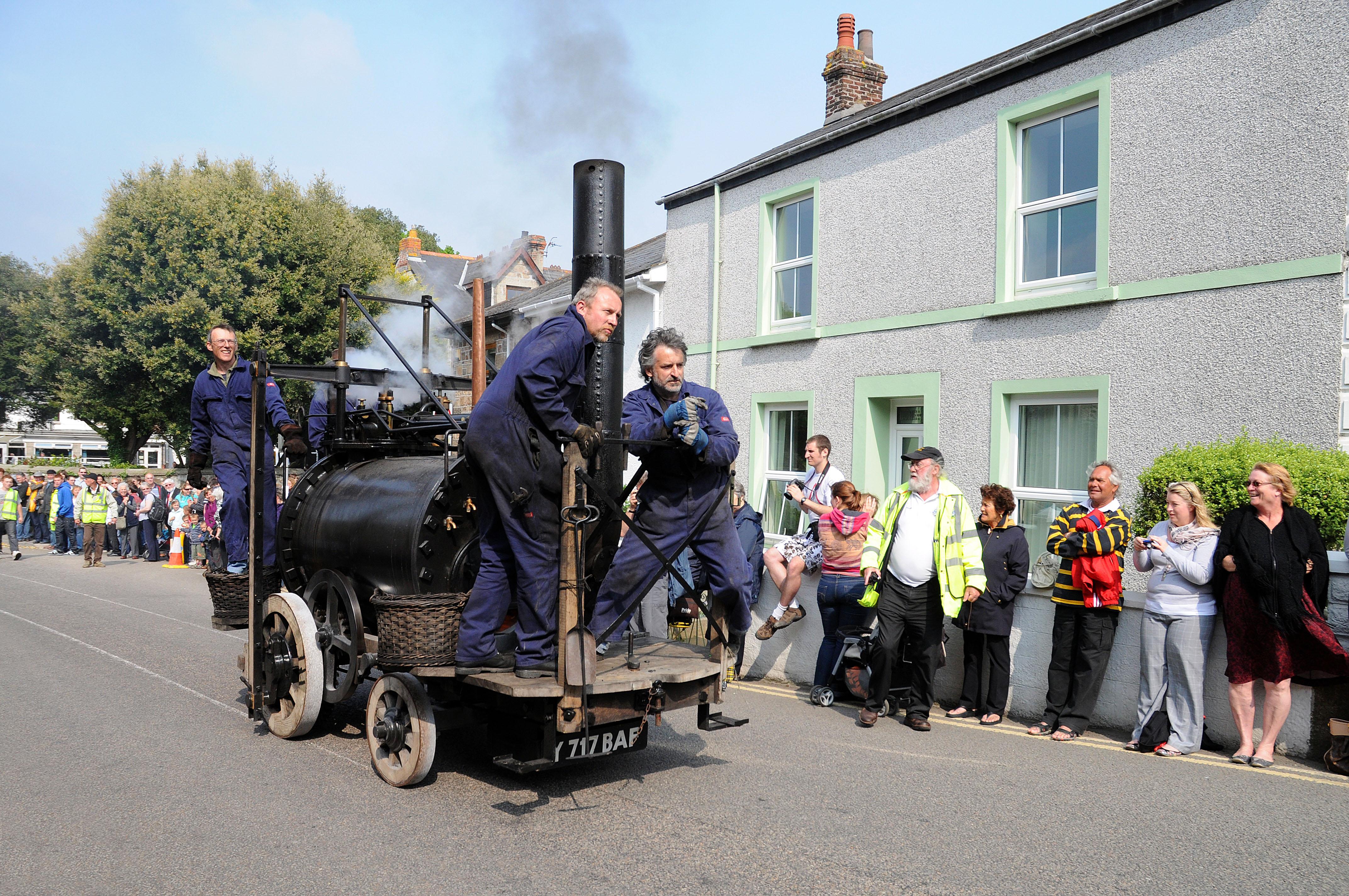 В 1801 году Тревитик усовершенствовал паровой двигатель и поставил его на обычные колеса. Изобретение получило прозвище «Пыхтящий дьявол» (Puffing Devil). В канун Рождества того же года инженер провел демонстрацию новинки, прокатив на «Пыхтящем дьяволе» шестерых пассажиров по улицам города Кэмборн в графстве Корнуолл.