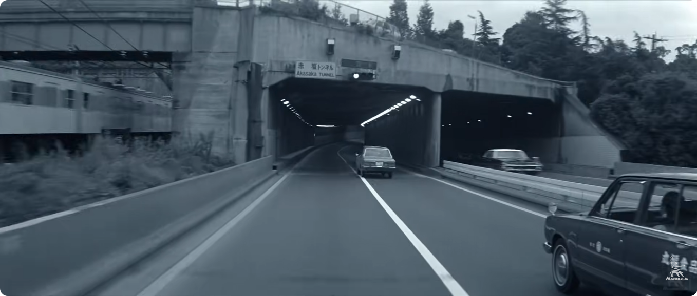 Тогда режиссер решил снять проезд Бертона по автостраде будущего в Токио. На эту «роль» подошли тоннели сети платных дорог Сюто, которую построили специально к Олимпиаде 1964 года. Новые дороги изменили облик Токио и оказали огромное влияние на развитие японской и мировой архитектуры.