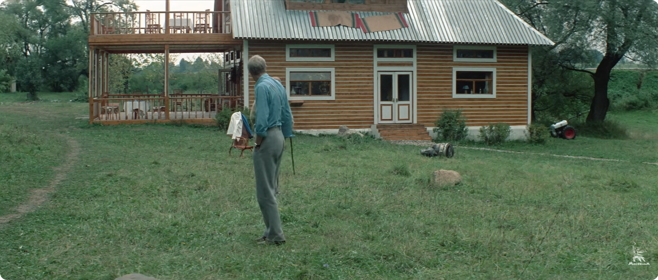 Строительство деревянного двухэтажного дома растянулось почти на год, что очень расстраивало режиссера. Но в итоге строение получилось очень добротным и удачно вписалось в окружающий ландшафт.