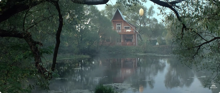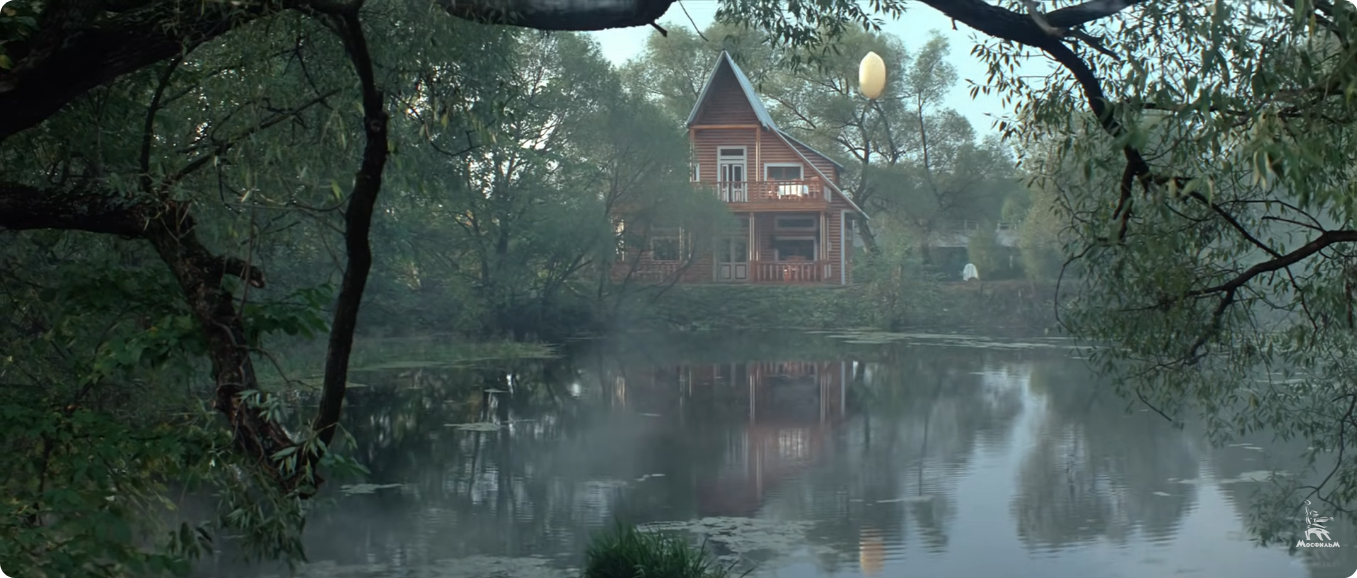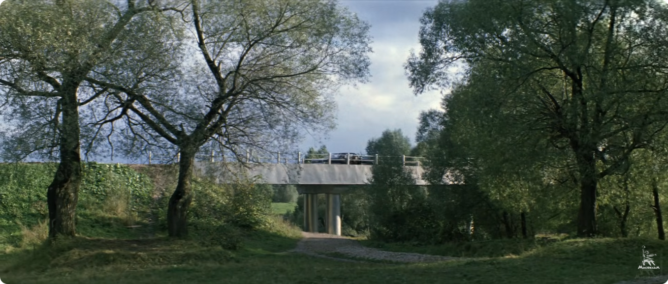 Тарковский искал для этой сцены особое место. И нашел его в окрестностях Звенигорода, где когда-то мать режиссера снимала на лето дачу. Здесь, недалеко от знаменитого Саввино-Сторожевского монастыря, раскинулся лес с могучими вековыми дубами, текла речка, в небольшом пруду качались на волнах листья. В такой идиллической местности Андрей Арсеньевич распорядился построить домик отца главного героя, а стоявший поблизости мост через реку Сторожку оббить железом.
