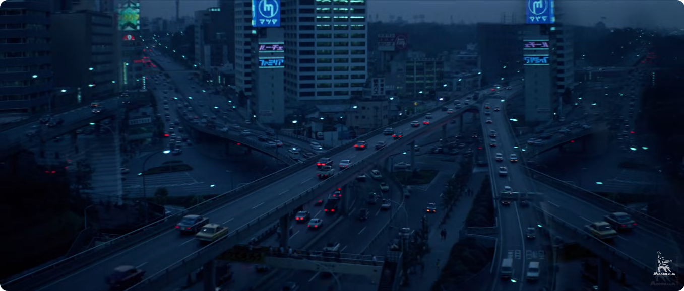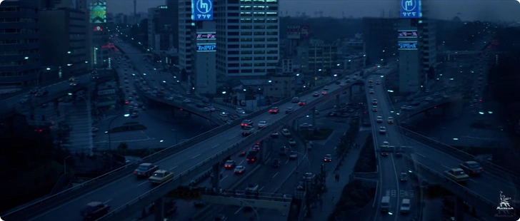 Съемочная группа запечатлела несколько участков автострад вблизи гостиницы Tokyo Prince Hotel, где и проживала. Затем благодаря манипуляциям на монтажном столе было увеличено количество эстакад и проезжающих по ним машин. Так Токио предстал на экране несколько иным, чем в реальности.