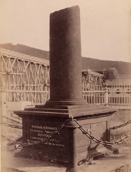 Судя по старинным фотографиям и описаниям, монумент на могиле Станислава Лепарского был отлит из чугуна и представлял собой обломанную колонну. «Прослужил российскому престолу 65 лет», — гласила надпись на основании колонны.