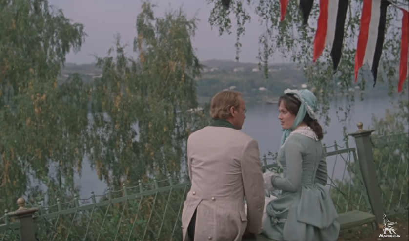 Буквально на мгновение в кадре появляется белая беседка на высоком волжском берегу. В этой сцене снимали Губернаторскую беседку (она же Беседка любви) на Мякушкинском спуске, а в дальнейшем ее сменила костромская «сестрица».