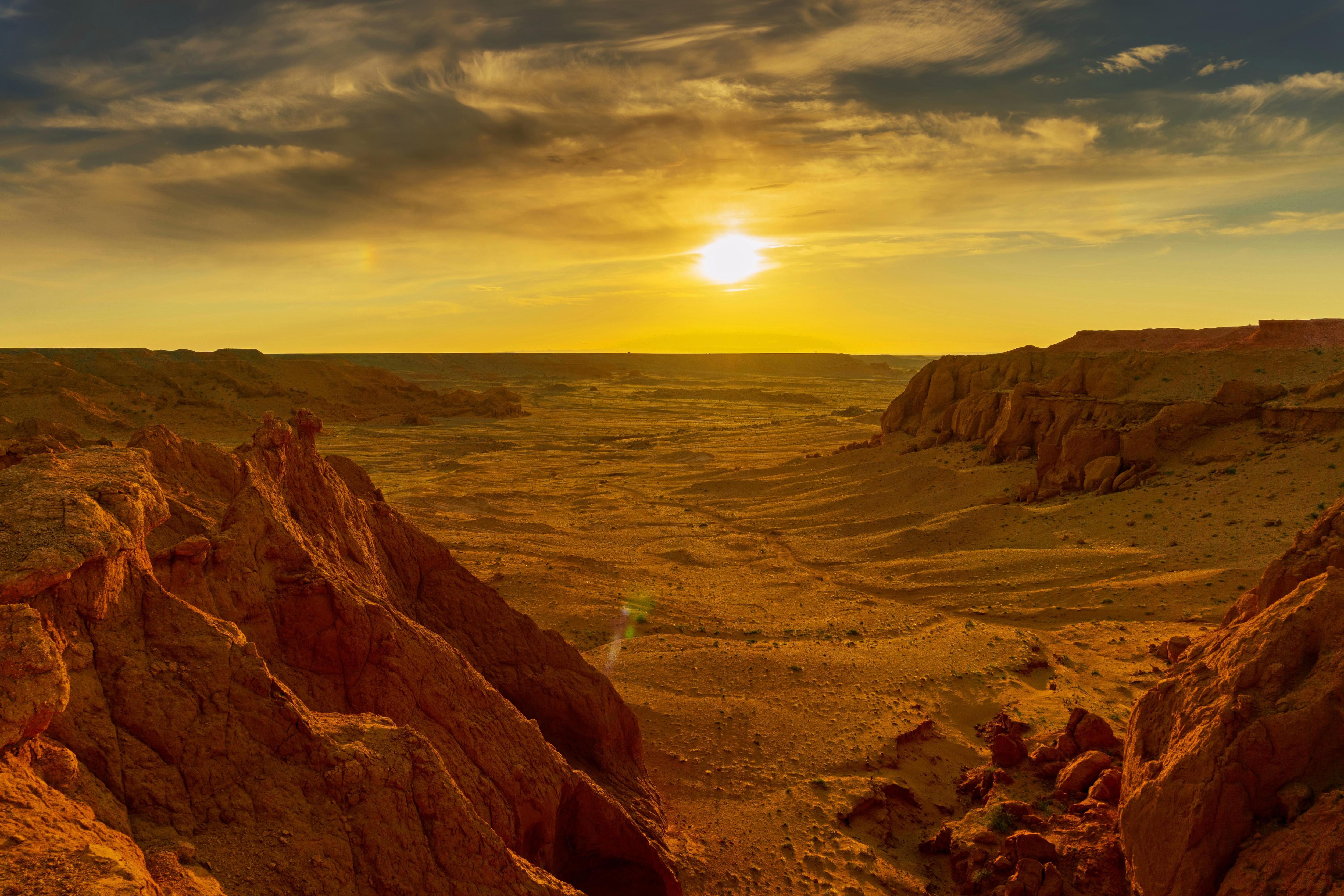 Первую зарегистрированную окаменелость в Монголии — осколки челюсти бронтотерия, третичного носорога, — нашел в этом регионе еще в 1892-м патриарх российской науки, геолог Владимир Обручев. Он же отметил следы сети древних речных долин. До этого считали, что пустыня образовалась на дне высохшего моря, но открытия Обручева позволили по-новому взглянуть на доисторический ландшафт.