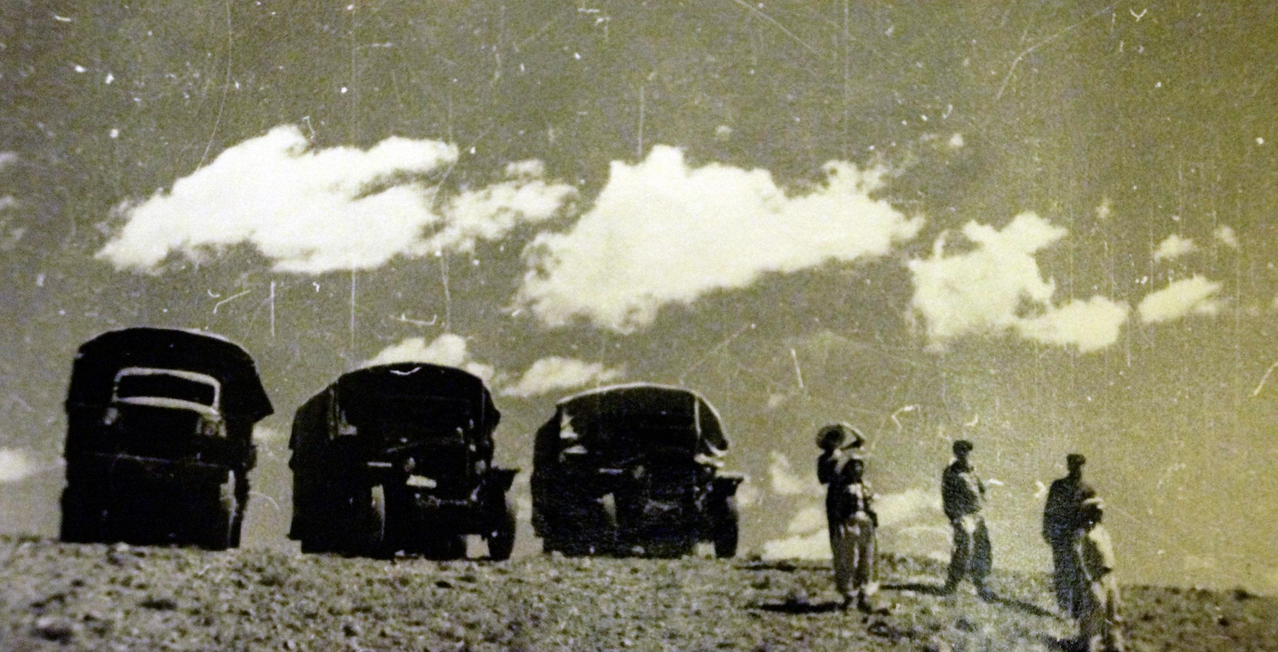 Три грузовика, на которых ехали участники, получили имена: «Дракон», «Дзерен» (в честь местного вида антилопы) и «Смерч». Поздняя осень в пустыне была суровой: после дневной жары ночами внезапно налетал холодный ветер, несший тучи, полные снега. Машины с трудом продвигались по бездорожью.