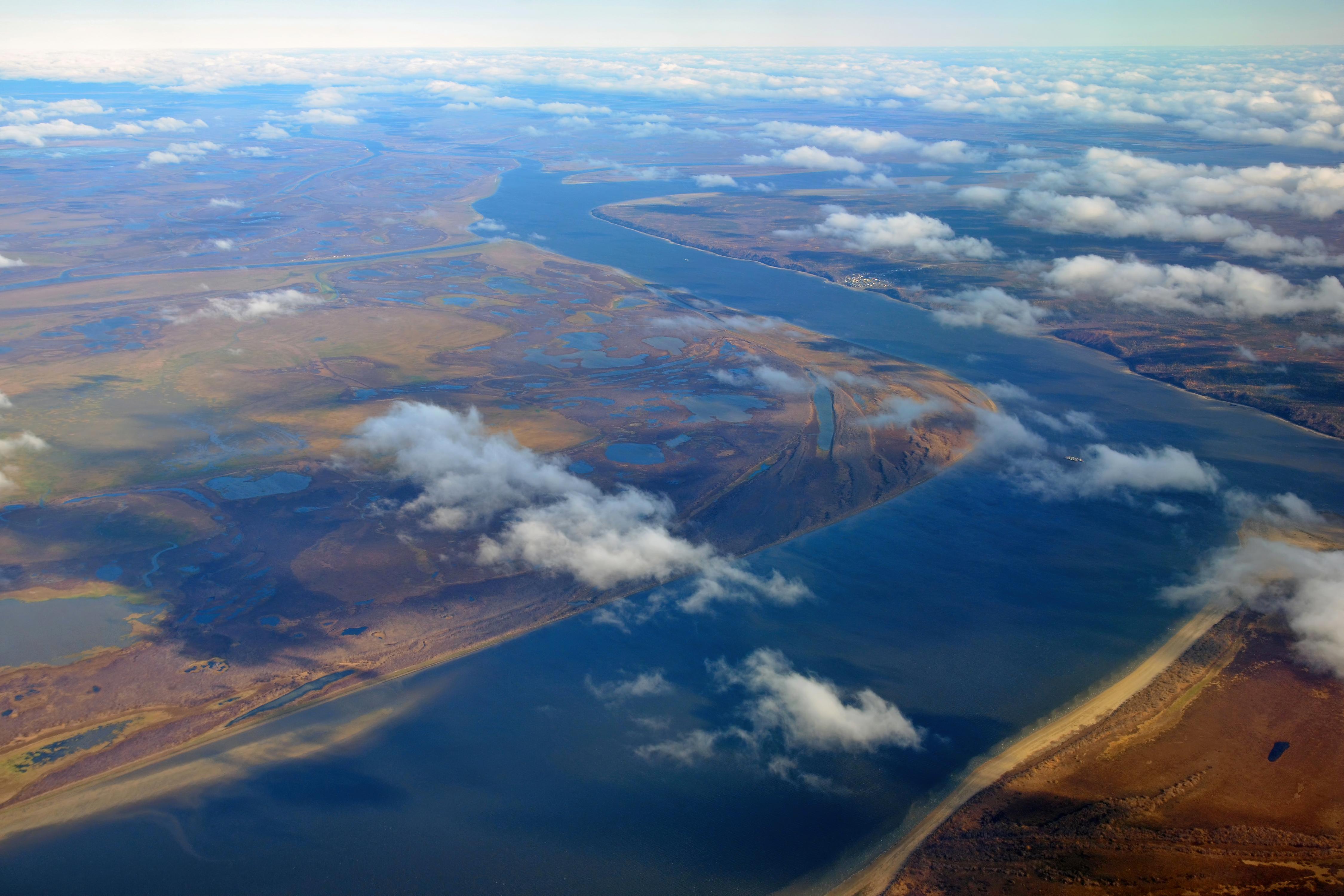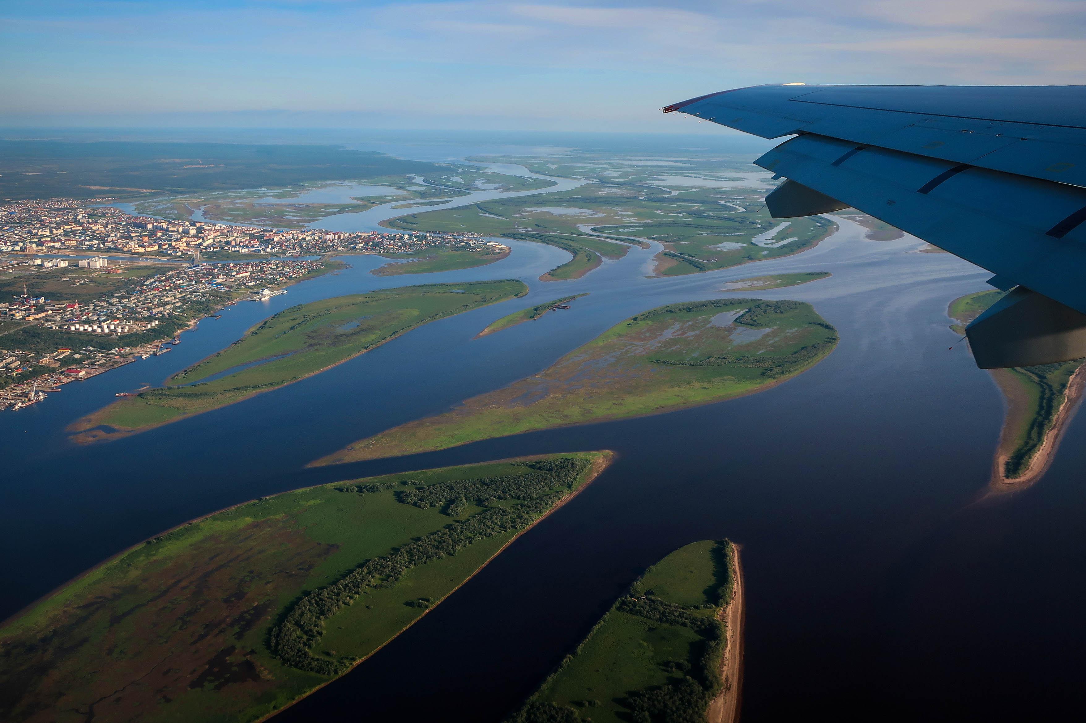 От устья Иртыша тянется Нижняя Обь. Она несет свои воды по широкой равнине. После поселка Перегребное в Ханты-Мансийском автономном округе река разделяется на Большую и Малую Обь — эти два рукава соединяются только через 460 километров, возле столицы Ямало-Ненецкого автономного округа Салехарда.