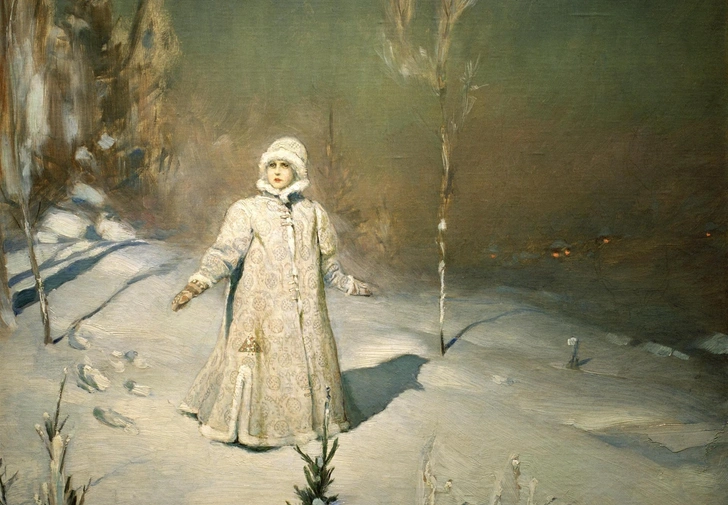 Популяризации образа Снегурочки поспособствовали и художники, работавшие над оформлением декораций к опере Римского-Корсакова и другим постановкам по мотивам сказки. Так, в 1899-м картину «Снегурочка» написал Виктор Васнецов, изобразивший девушку в традиционной русской шубе на лесной опушке при свете Луны.