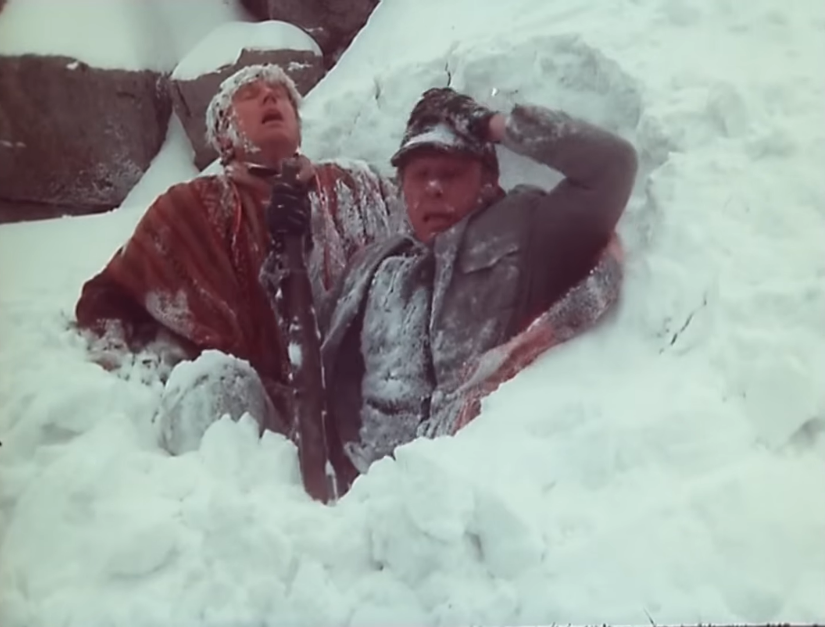 Например, знаменитая гора Ай-Петри благодаря волшебству кинематографа превратилась в Анды, где путешественники преодолевали опасный заснеженный перевал и спасались от лавины. Примечательно, что эта сцена снималась без дублеров. На съемках дежурили профессиональные спасатели и альпинисты, но все же ради этого зрелищного эпизода актеры подвергали свои жизни риску.