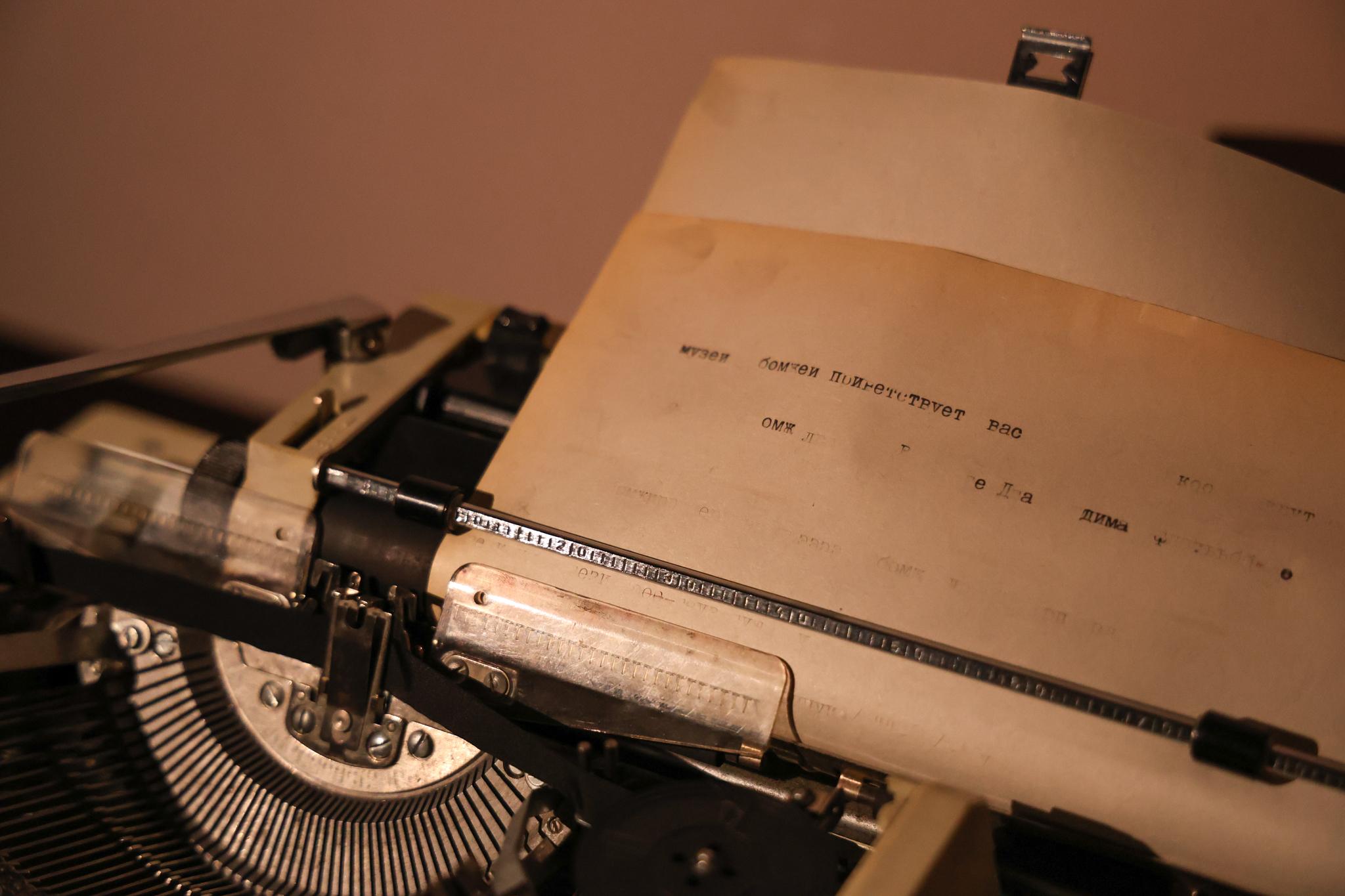 А ещё в музее иногда ведёт экскурсии Валерий Соколов — создатель «Ночлежки», той самой первой благотворительной организации для помощи бродягам. Когда-то он сам был бездомным. Вот, кстати, печатная машинка, на которой когда-то печатали устав «Ночлежки»: