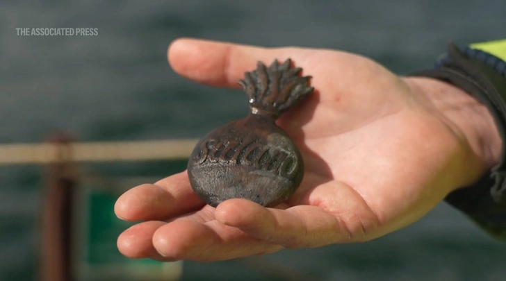 Работать подводникам приходится не только на скорость, но и с максимальным соблюдением мер безопасности — место раскопок заполнено ядрами, представляющими опасность для водолазов.