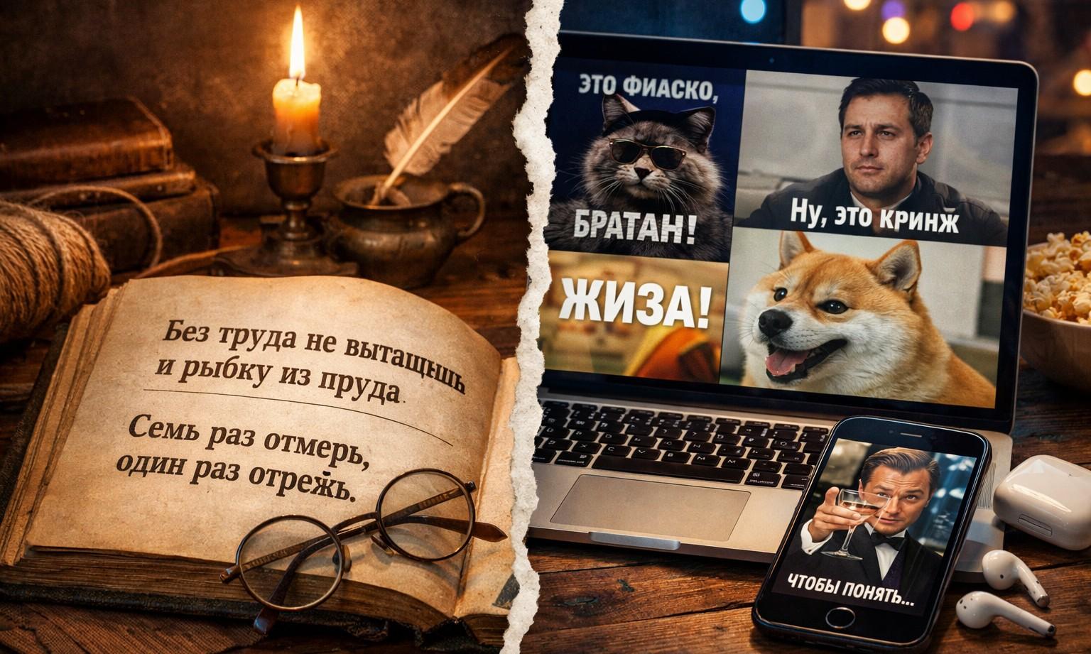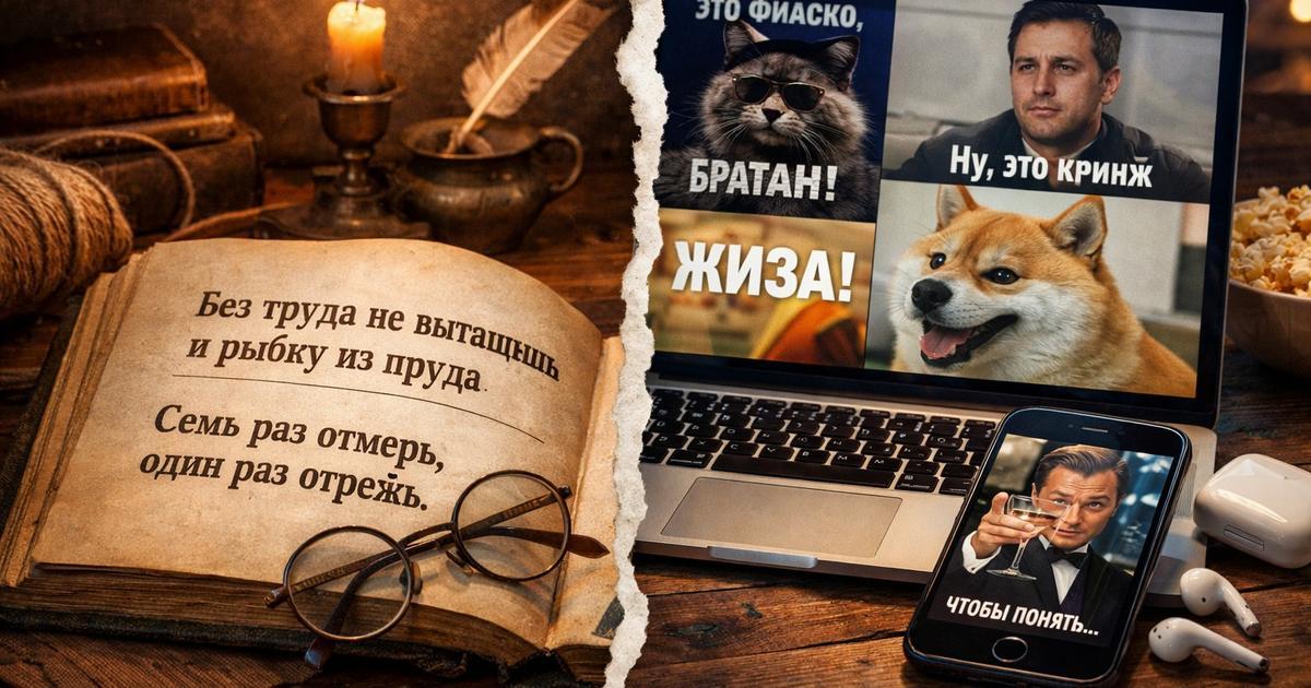 Современный язык переживает изменения. Лингвисты и культурологи : привычные поучительные пословицы и поговорки все реже встречаются в живой речи, а на смену им приходят фразы, возникшие в интернете — короткие и запоминающиеся мемы.