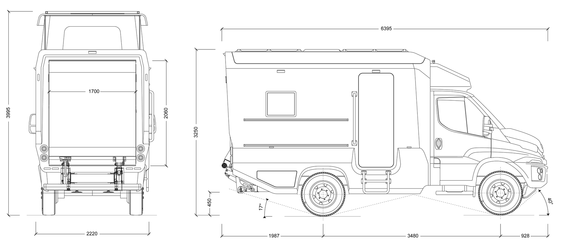 При этом откидная задняя дверь жилого модуля с креплениями для двухколесных транспортных средств, оснащена гидравлическим подъемником, что позволяет легко выгружать и загружать велосипеды, а также использовать ее в качестве уличного стола.