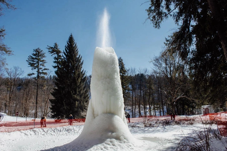 Сейчас эта фигура представляет собой конус, образованный тысячами сосулек, и с каждым днем он захватывает все большую территорию. И бороться с ледяным вулканом не собираются. Напротив, он стал местной достопримечательностью. И убрать вулкан окончательно — значит лишить парк фонтана.