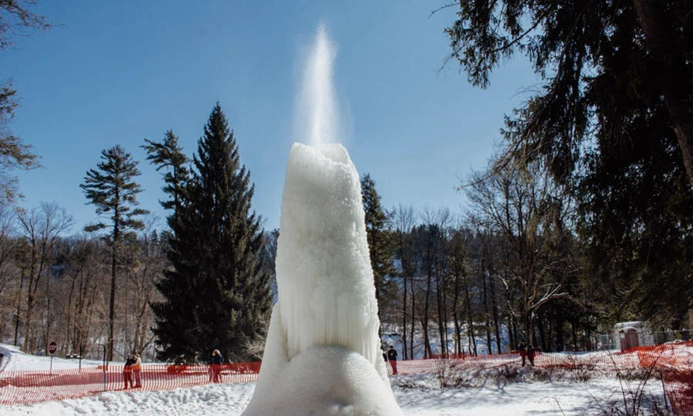 На севере штата Нью-Йорк в последние дни настолько морозно, что нет-нет да и проявляют себя разные чудеса природы. Например, посетители парка Летчворт заметили на его территории ледяной вулкан — образование, которое никогда здесь раньше не встречали. И он моментально стал одной из главных достопримечательностей парка.