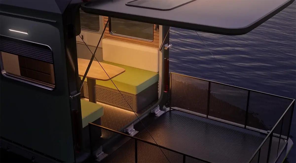Особенность прицепа заключается в интеграции батареи большой емкости и встроенного бензинового генератора. Электроника, освещение и кухонное оборудование автодома полностью питаются от аккумулятора, а газовый двигатель подзаряжает его, обеспечивая автономную работу в течение 4–5 дней без подключения к внешним источникам энергии. Кроме того, инженеры внедрили систему рекуперации тепла от двигателя для обогрева салона, что делает путешествия максимально комфортными в холодное время года.