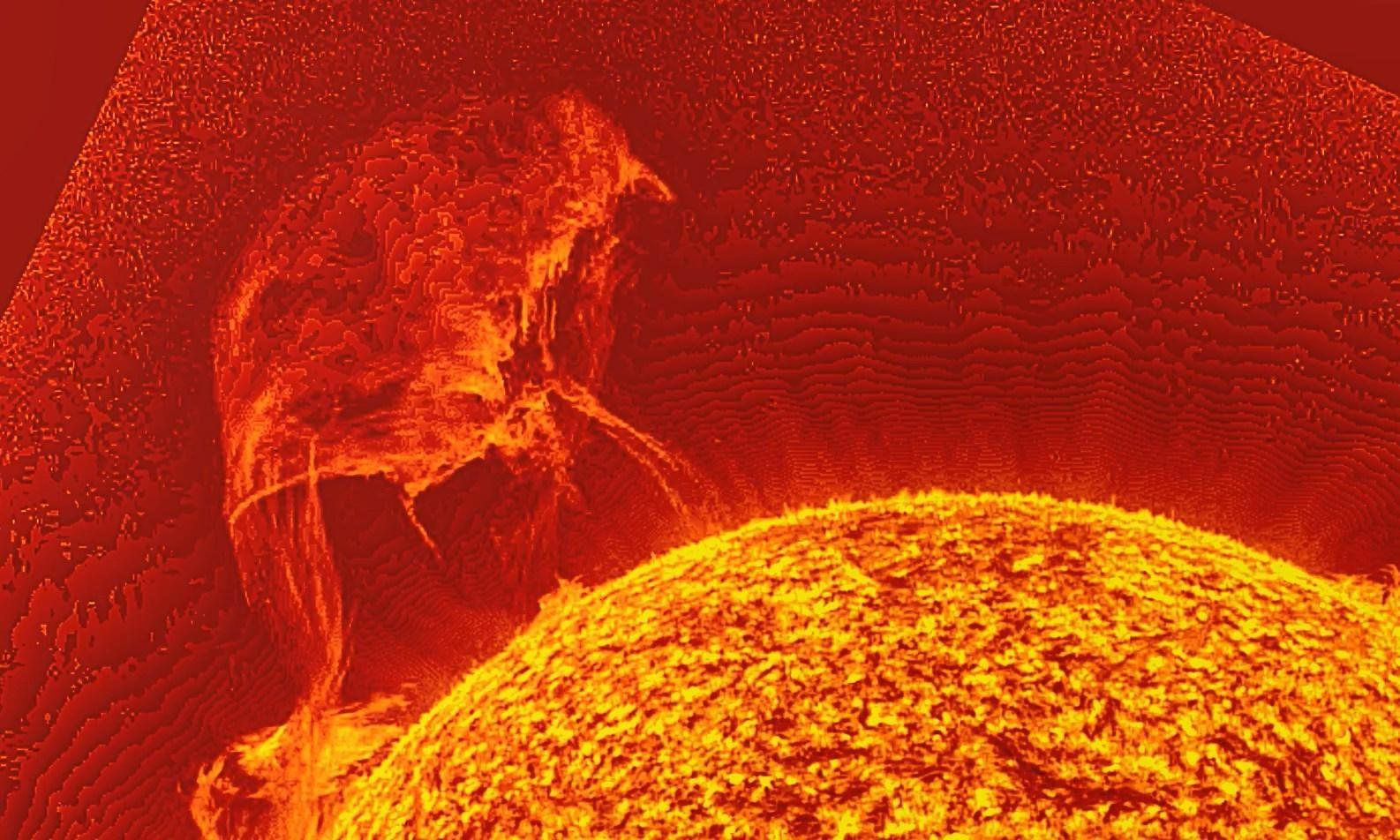 Выброс протуберанцев, зарегистрированный сразу несколькими космическими аппаратами, следящими за Солнцем, начался около 22:30 по московскому времени, одновременно с максимальной фазой затмения.