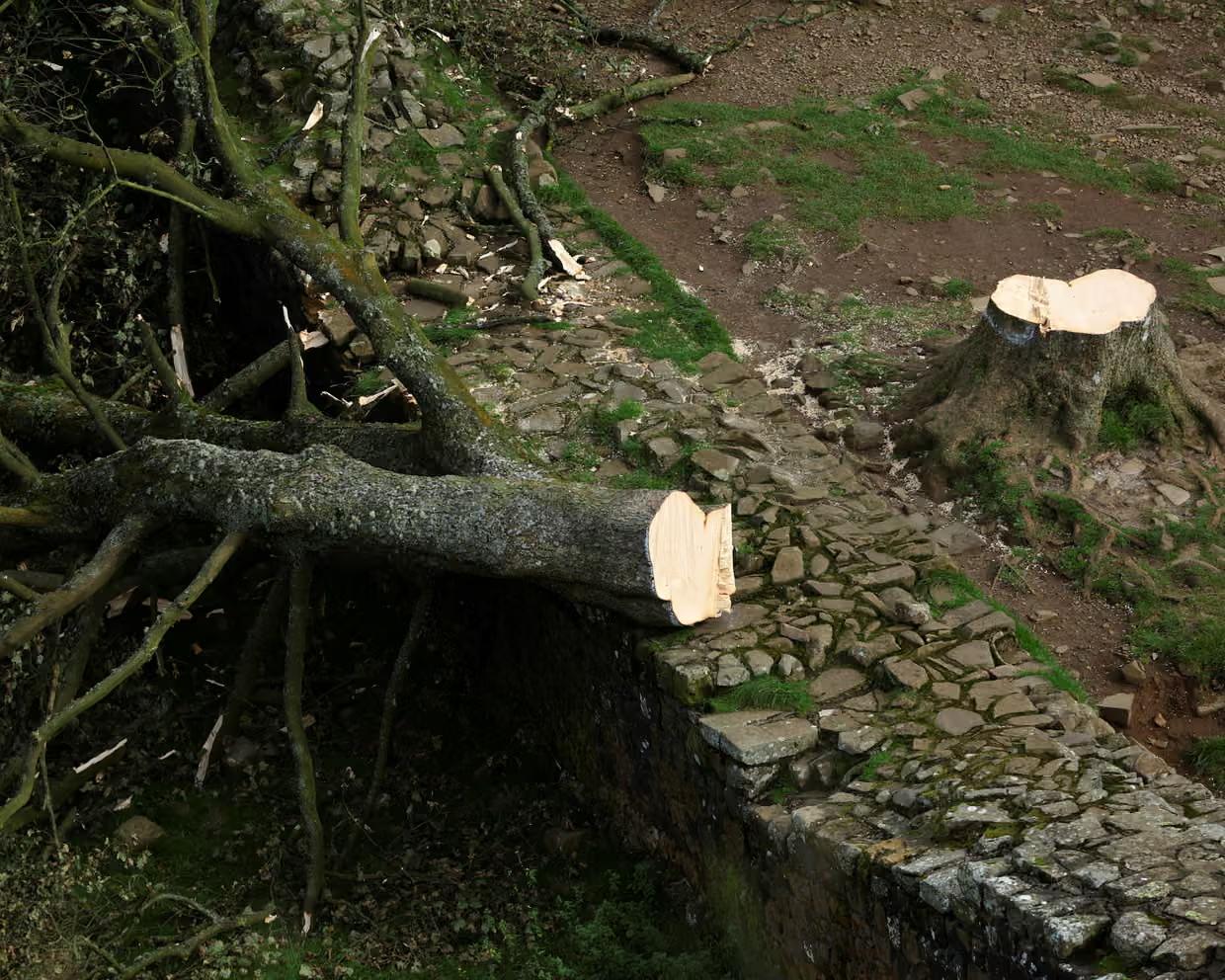 Ранним утром 28 сентября 2023 года, во время шторма «Агнес», двое мужчин из Камбрии, Дэниел Грэм и Адам Каррутерс, отправились к Адрианову валу в Нортумберленде, чтобы срубить всемирно известное, всеми любимое дерево.