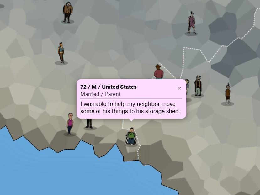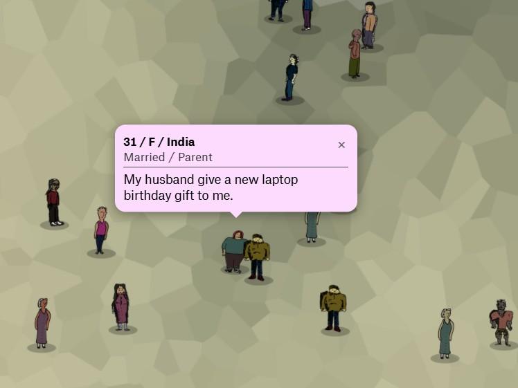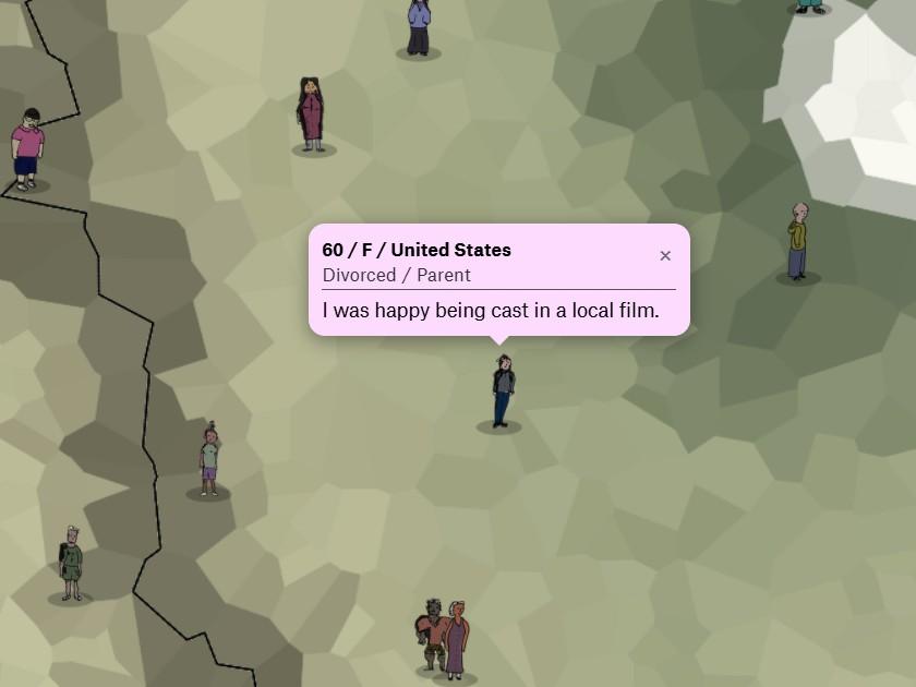 Американский дата-журналист и иллюстратор Элвин Чанг Happy Map — интерактивную «карту счастья» с рассказами людей разных возрастов и из разных стран о счастливых моментах, которые они пережили.