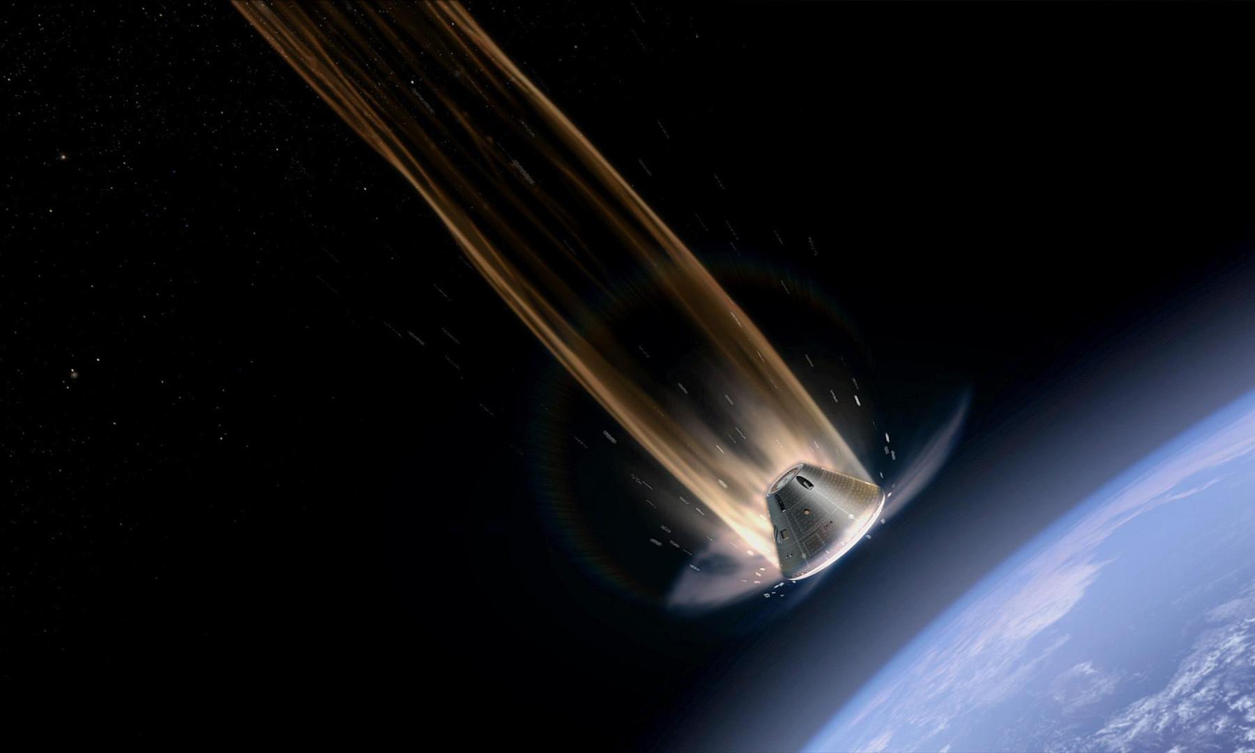 Летящий с огромной скоростью корабль при этом будет напоминать огненный шар, а окутавший его кокон плазмы на шесть минут полностью заблокирует связь Центра управления полетами с «Орионом».