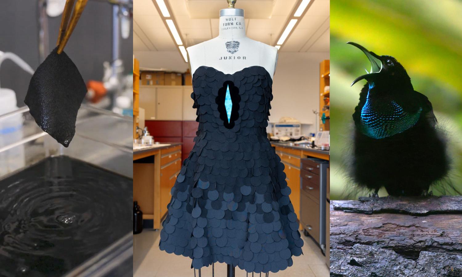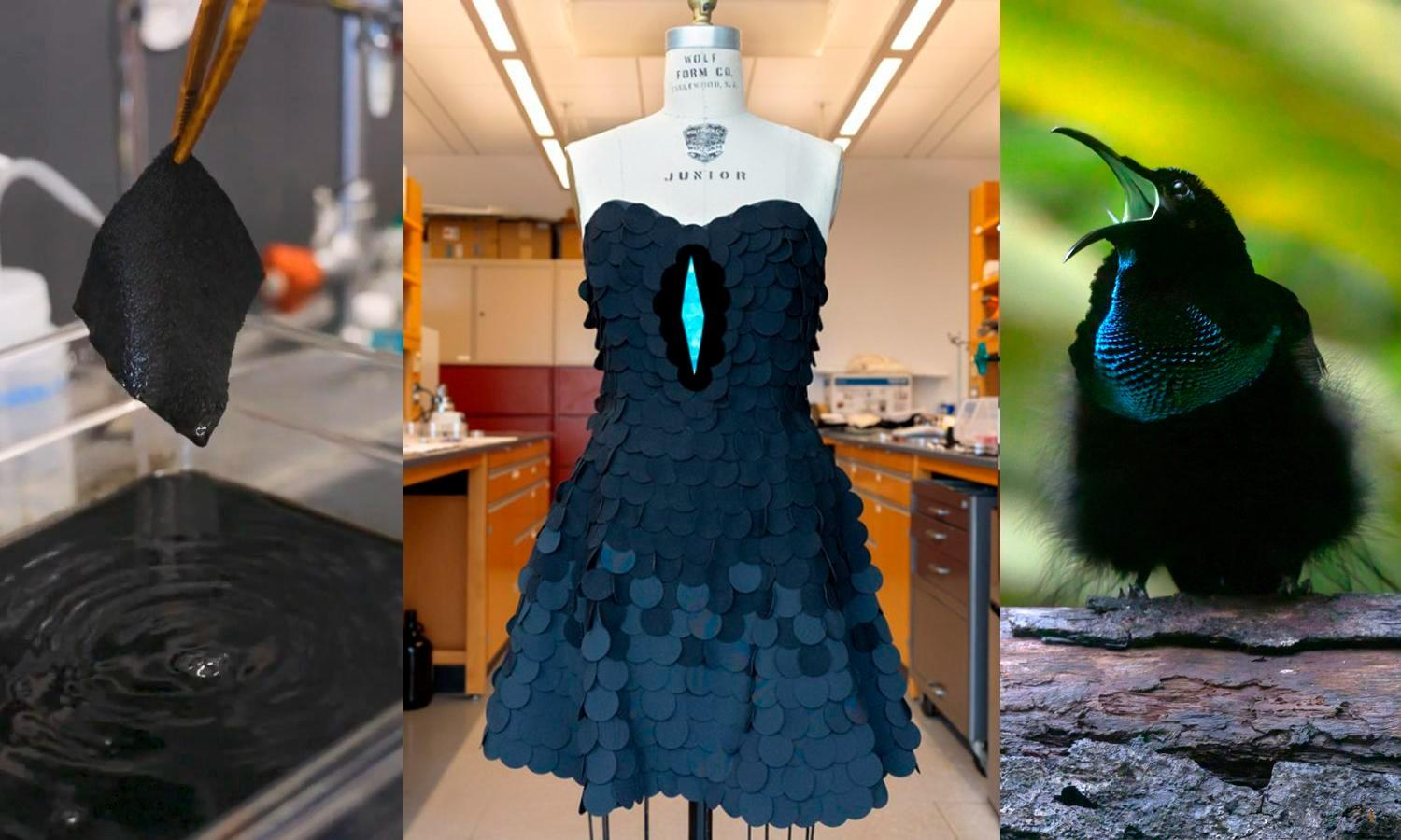 Ученые из Корнеллского университета (США), статья которых опубликована в журнале Nature Communications, обратившись к миру пернатых, нашли способ искусственного воспроизведения ультрачерного цвета, и создали самую черную в мире ткань, из которой даже платье.