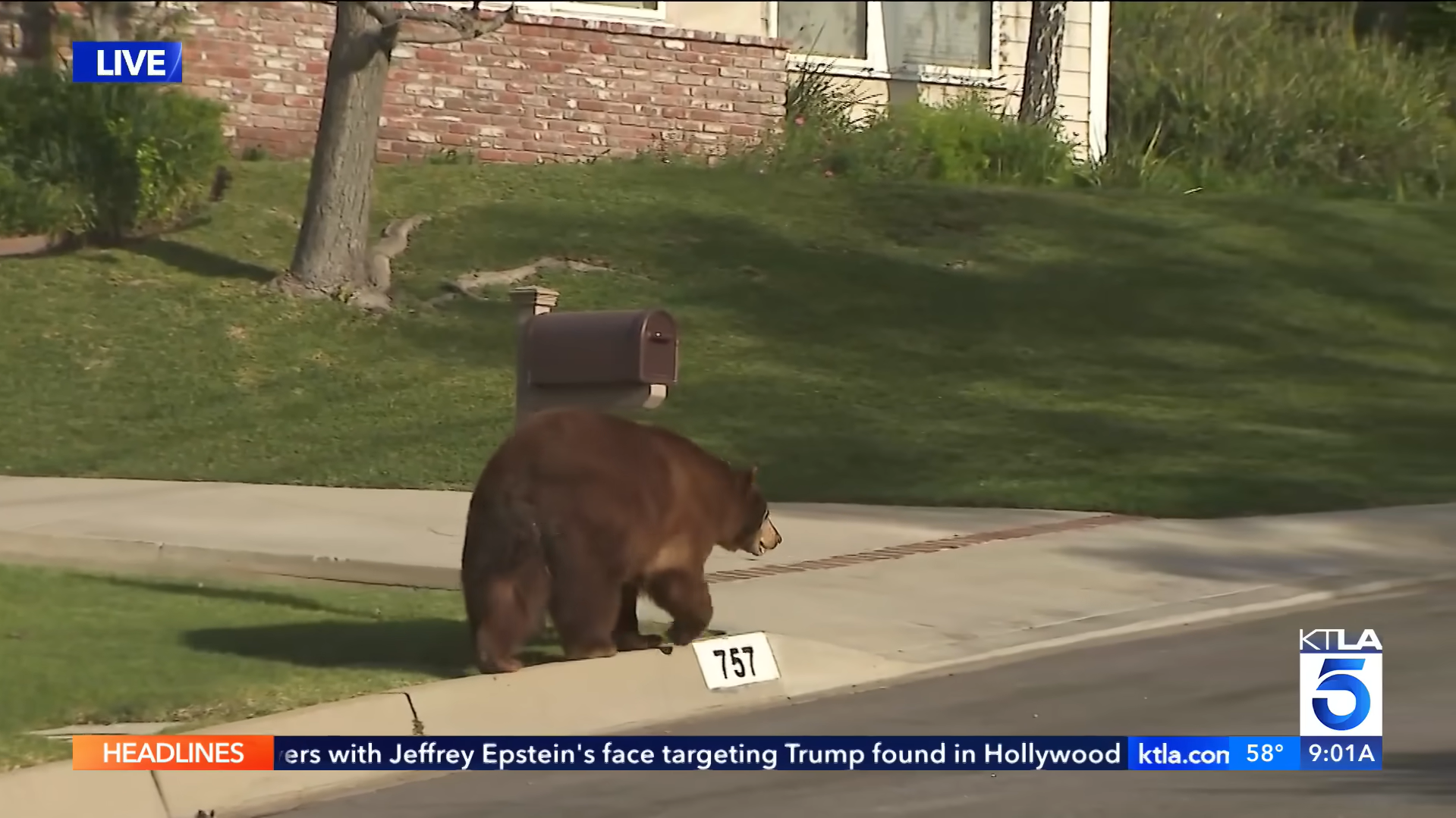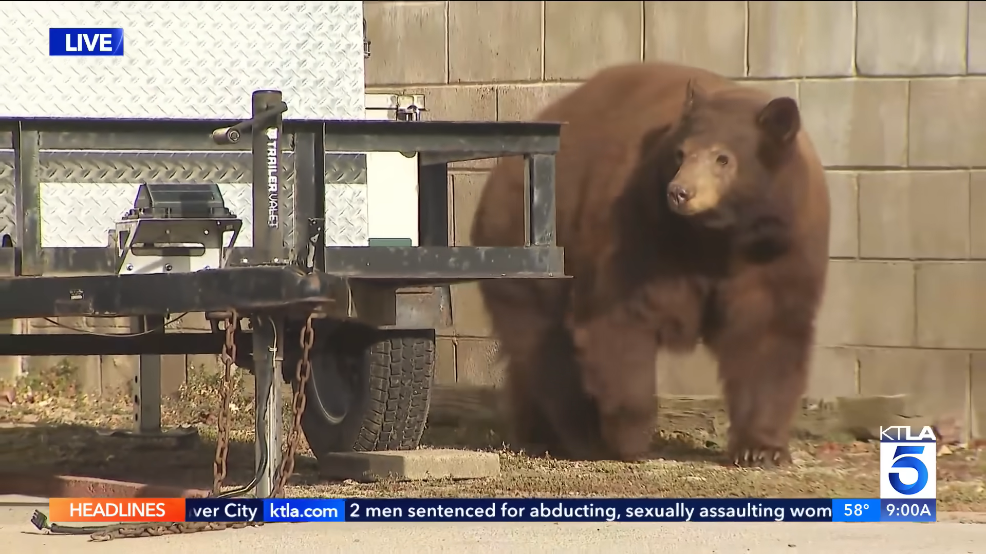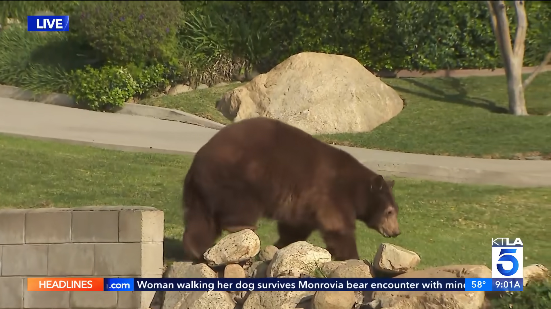 Утром 15 марта, во время прямого эфира местного телеканала , когда съемочная группа освещала происшествие с диким медведем в Монровии, пригороде Лос-Анджелеса, в кадре неожиданно появился медведь.