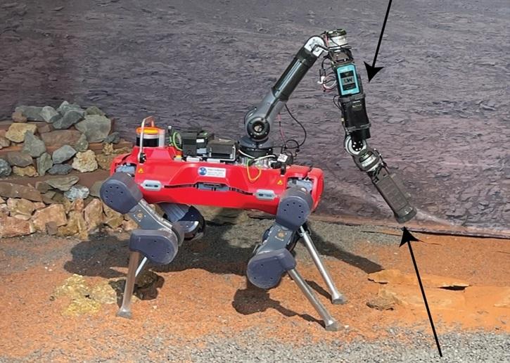 Призванный преодолеть эти ограничения четырехногий шагающий ANYmal, похожий на робособак от Boston Dynamics, оснащен роботизированной рукой, удерживающей два инструмента: микроскопический сканер и портативный спектрометр.