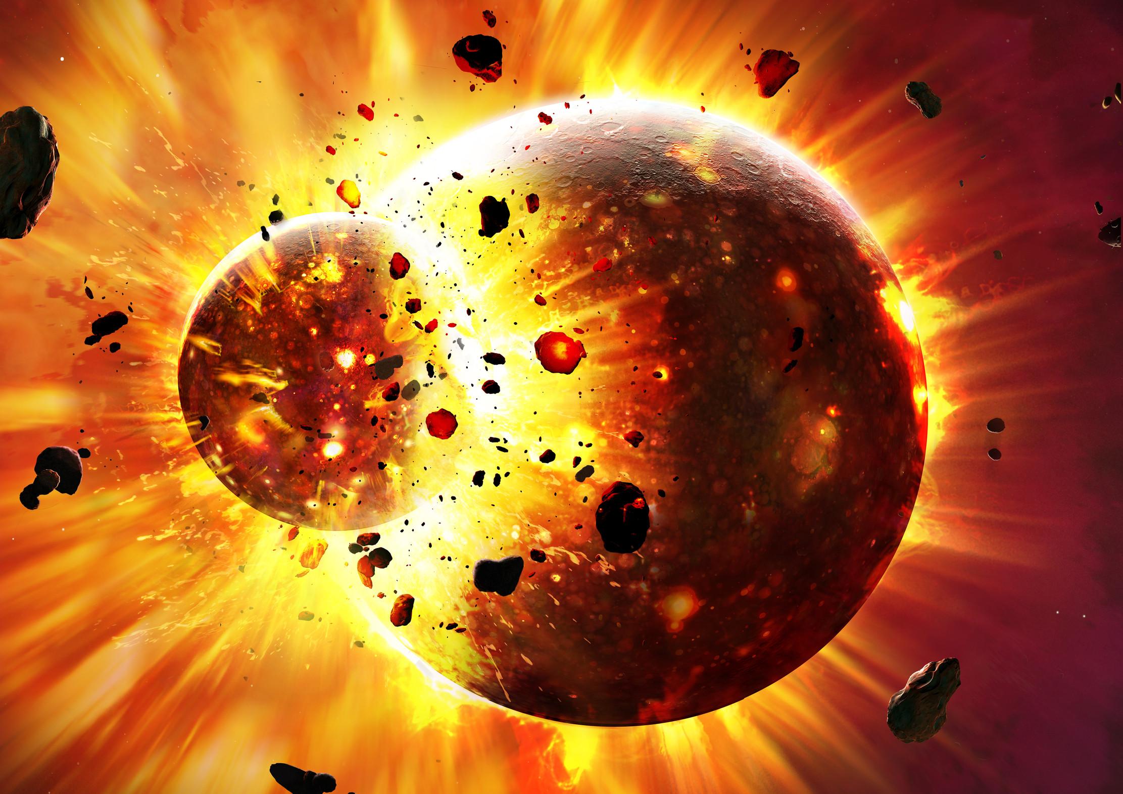 Около 4,5 миллиарда лет назад произошло важнейшее событие в истории Земли: сравнительно небольшое (примерно с Марс) небесное тело, которое называют Тейя, столкнулось с еще молодой Землей (прото-Землей). В результате столкновения изменились размеры, состав и орбита Земли, а сам удар ознаменовал рождение Луны. Во всяком случае, пока именно эта теория гигантского удара лучше всего объясняет происхождение естественного спутника Земли.
