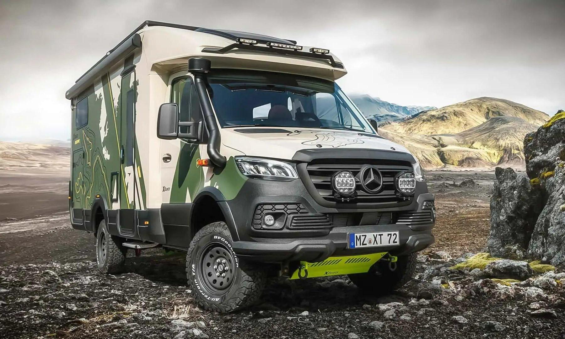 XTURA ESCAPE построен на шасси Mercedes Sprinter с усиленной задней подвеской, стальными дисками и увеличенными шинами 265/70 R16. Модернизации позволили увеличить общую нагрузку до 4,45 тонны. Внешняя защита включает подсветку двигателя желтым неоновым светом, защиту дифференциала и дизельного бака, а также прочные колесные арки и краску Raptor по низу. Встроенный гараж хранит полный комплект для экстремальных условий: сандтраки, лопаты, топор, складную пилу и компрессор, а шноркель пригодится при пересечении водоемов.