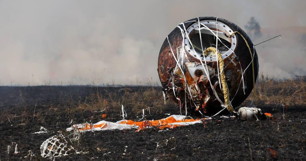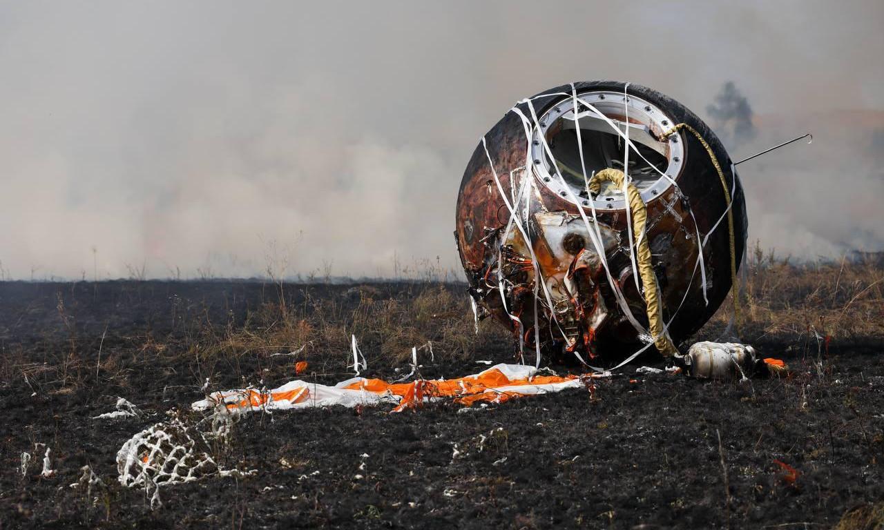 Видео с места посадки спускаемой капсулы спутника (Роскосмос)