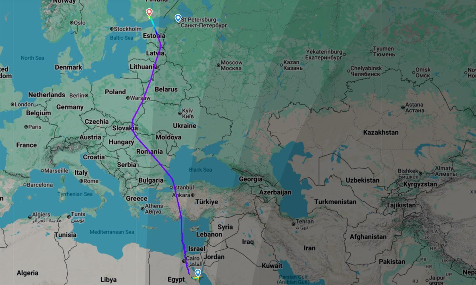 Как следует отдохнув в Египте, группа в полосатых купальниках туристов погрузилась в самолет, чтобы лететь из Хургады в Санкт-Петербург. Да только не успели они приземлиться, как в аэропорту Пулково из-за угрозы атаки беспилотников ввели план «Ковер». Делать было нечего, и борт суадовской авиакомпании Nesma Airlines поздней ночью экстренно сел в аэропорту Хельсинки.