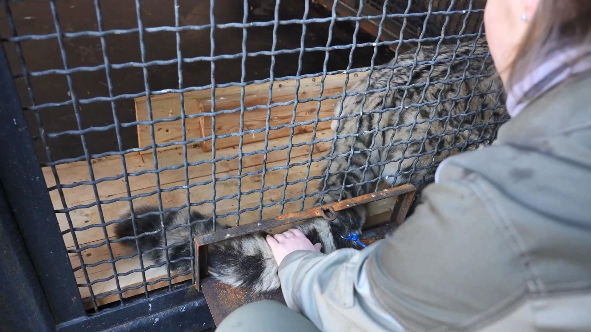 Живущие в Московском зоопарке снежные барсы (ирбисы) Дайна и Унцик уже не молоды — им 15 и 16 лет соответственно. Поэтому сотрудники зоопарка начали проводить с ними регулярные ветеринарные тренинги — возрастных пациентов приучают спокойно переносить инъекции и процедуру взятия крови из хвостовой вены (у крупных представителей семейства кошачьих кровь на анализ берут именно из хвоста).