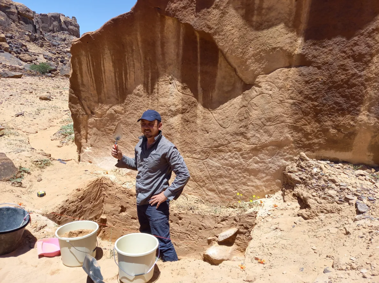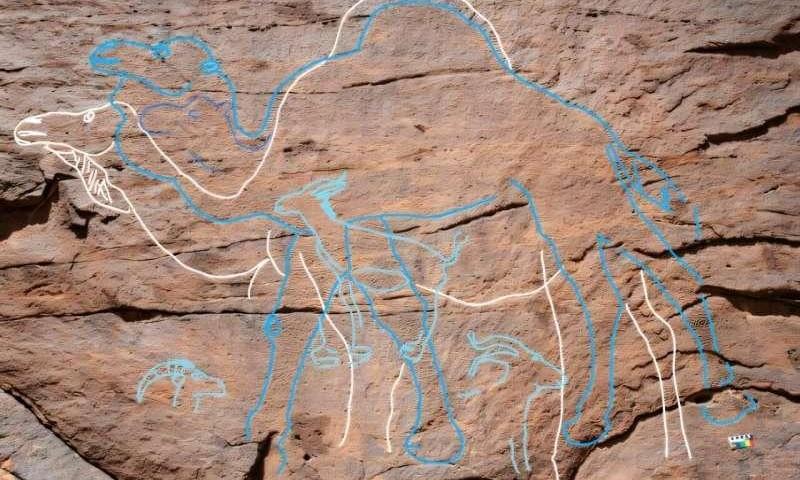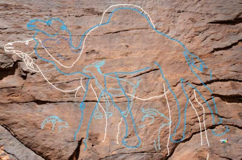 Археологи провели раскопки непосредственно под четырьмя наскальными изображениями верблюдов, чтобы попытаться определить их возраст. Они обнаружили более 1200 камней, 16 фрагментов костей животных и три очага.