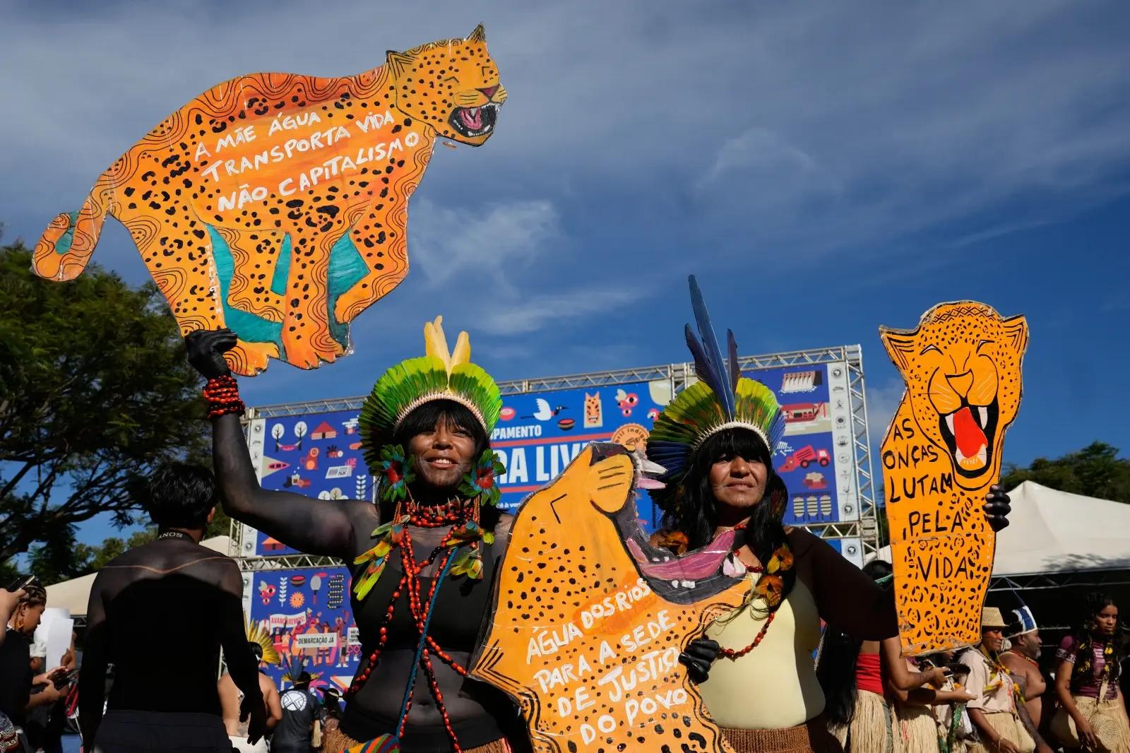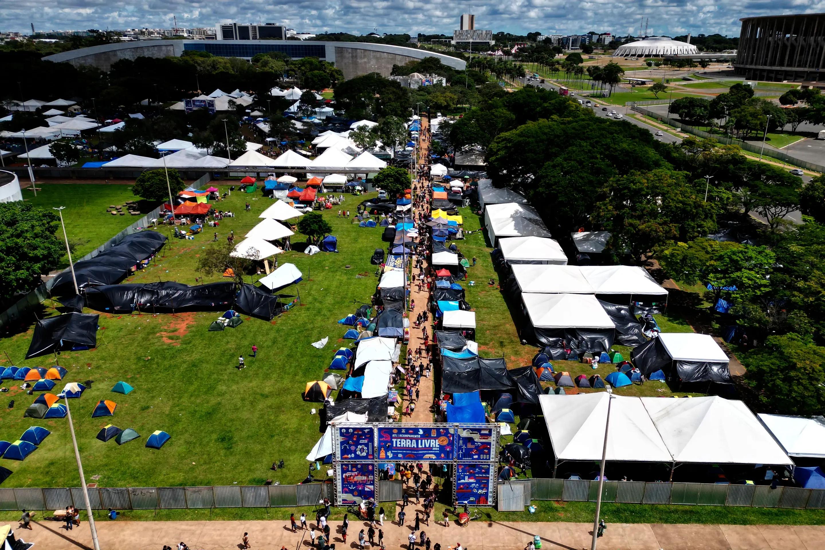 «Свободная земля» — крупнейшая в Бразилии организация коренного населения, объединившая около семи тысяч представителей коренных народов из 200 групп со всей страны. Уже в 22-й раз они на неделю разбивают лагерь в Бразилиа, чтобы выдвинуть единые требования.