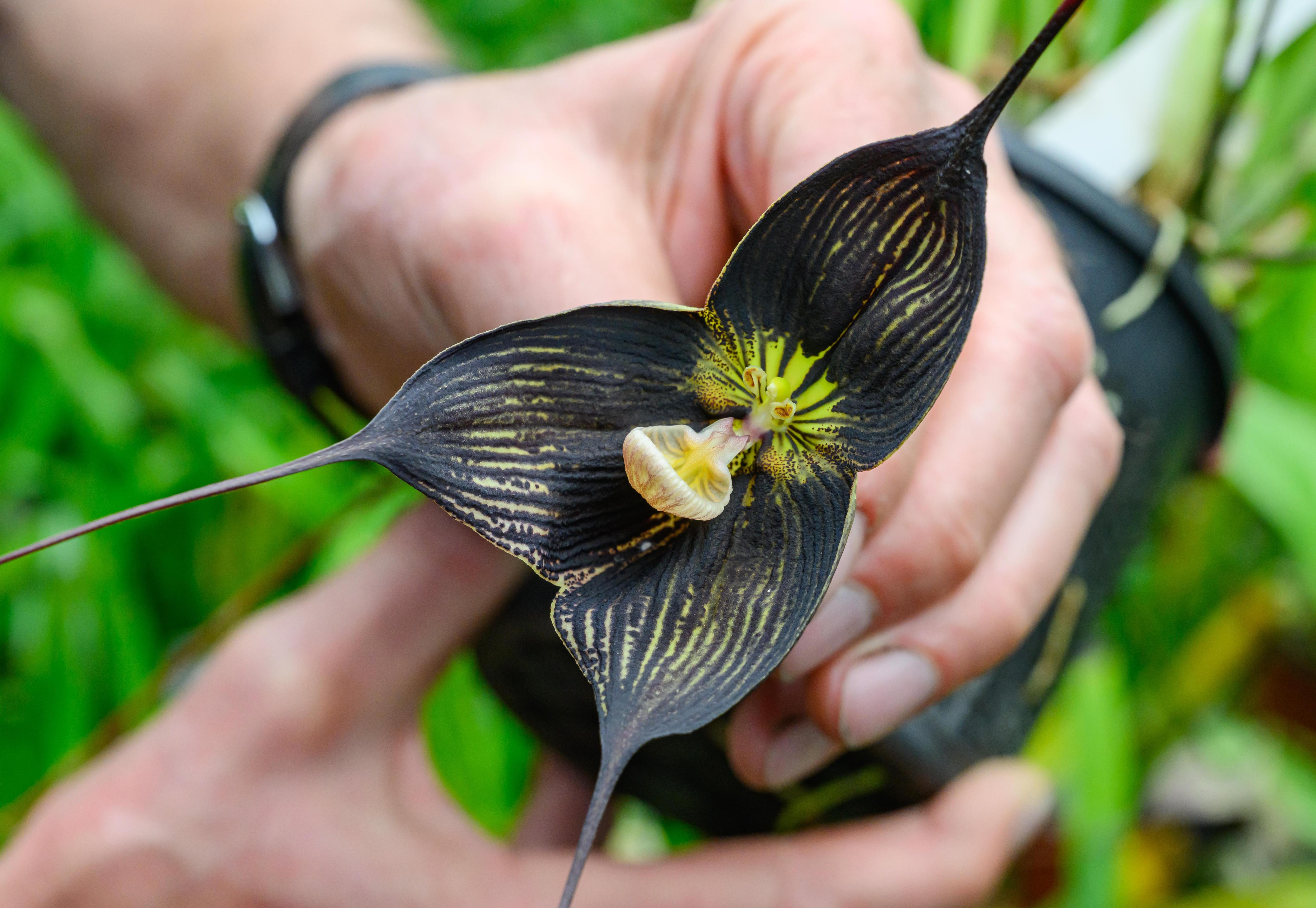 Когда вы видите эти цветы вблизи, легко понять, почему они вызывают такое восхищение. Их название, Дракула, происходит не от слова «вампир», а от латинского выражения «маленький дракон», которое отсылает к их длинным, похожим на клыки чашелистикам — структурам, напоминающим лепестки, которые защищают развивающийся цветок орхидеи.