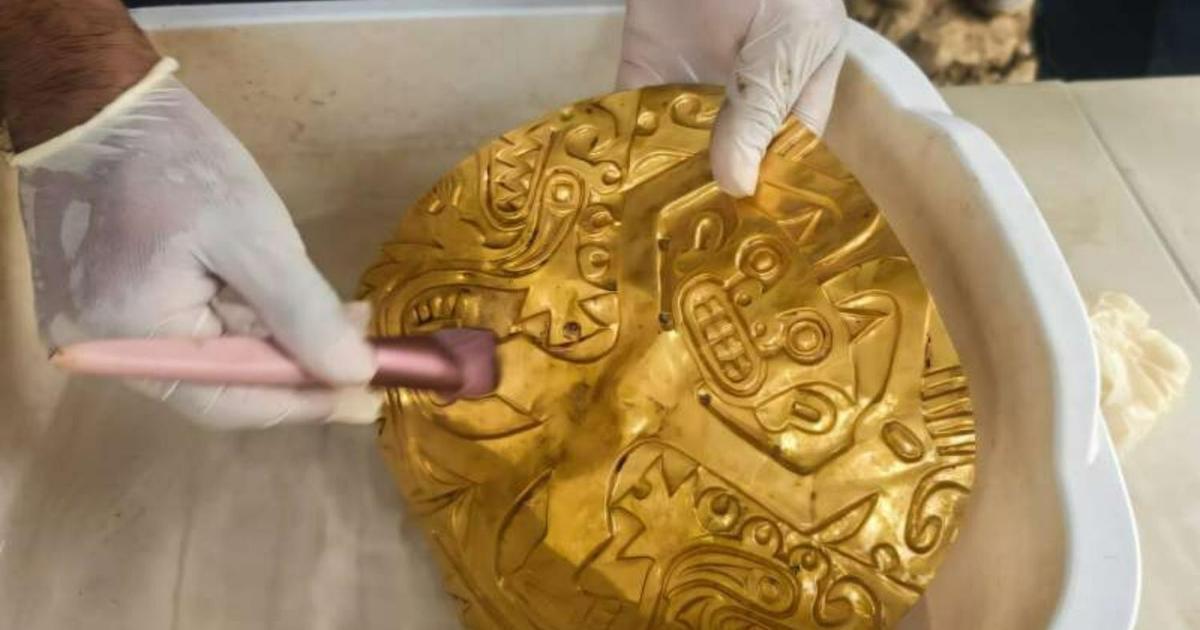 Скелет был найден в окружении золотых предметов и керамики с традиционными орнаментами. Особое внимание исследователей привлекли два браслета, две серьги и нагрудное украшение с изображениями летучих мышей и крокодилов. По словам Майо, именно человек с золотыми украшениями, вероятно, обладал самым высоким социальным статусом в группе.