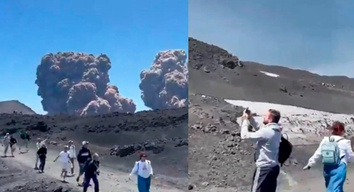 Бежали, но останавливались ради фото: в Италии попала на видео эвакуация туристов во время извержения Этны